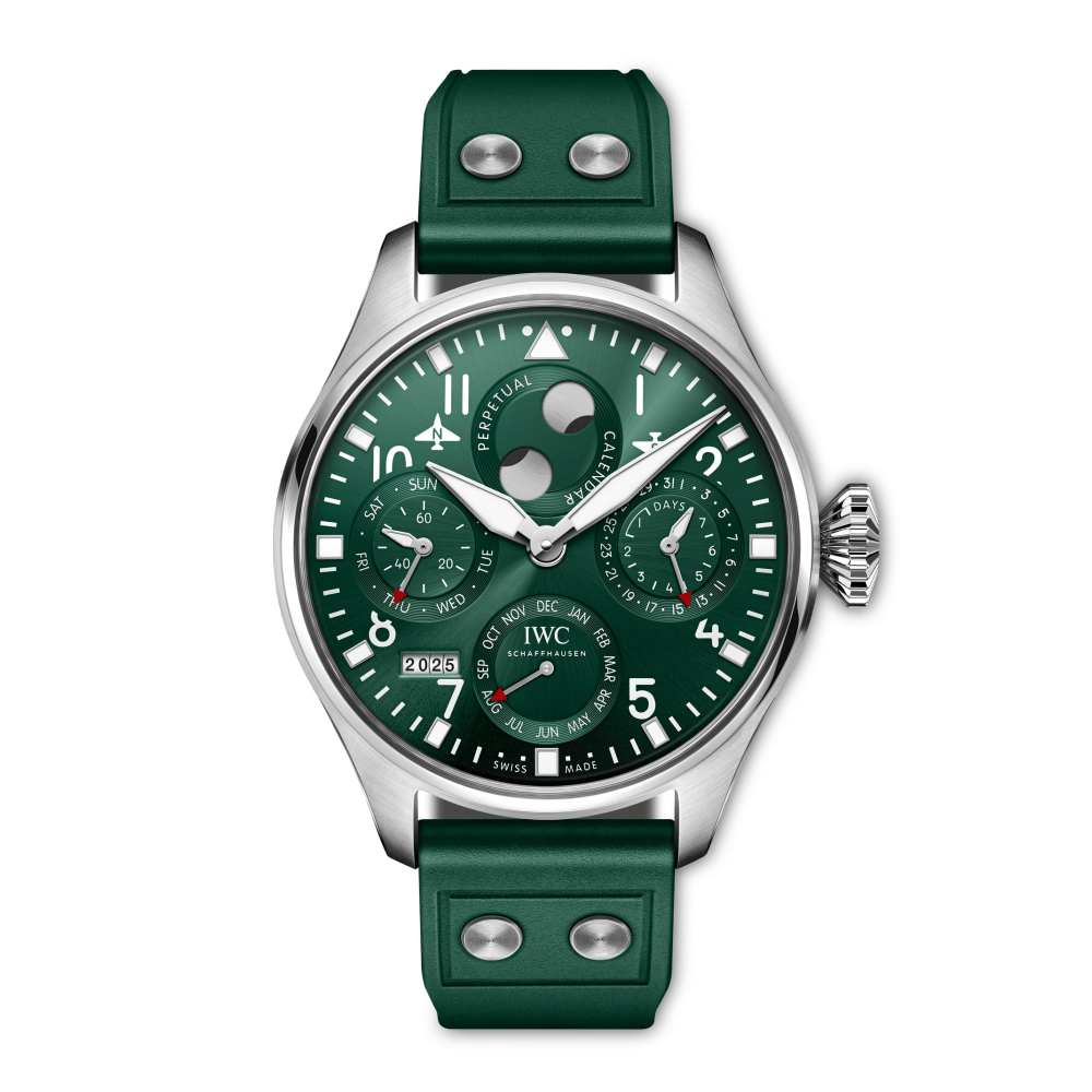 The Big Pilot’s Watch Perpetual Calendar in stainless steel with a racing green dial continues the long-standing tradition of perpetual calendar watches in the Big Pilot’s collection.