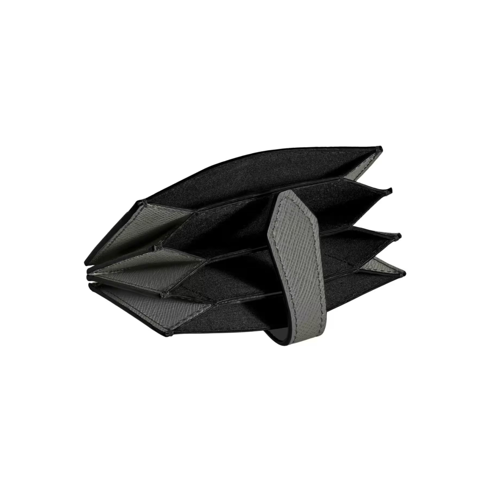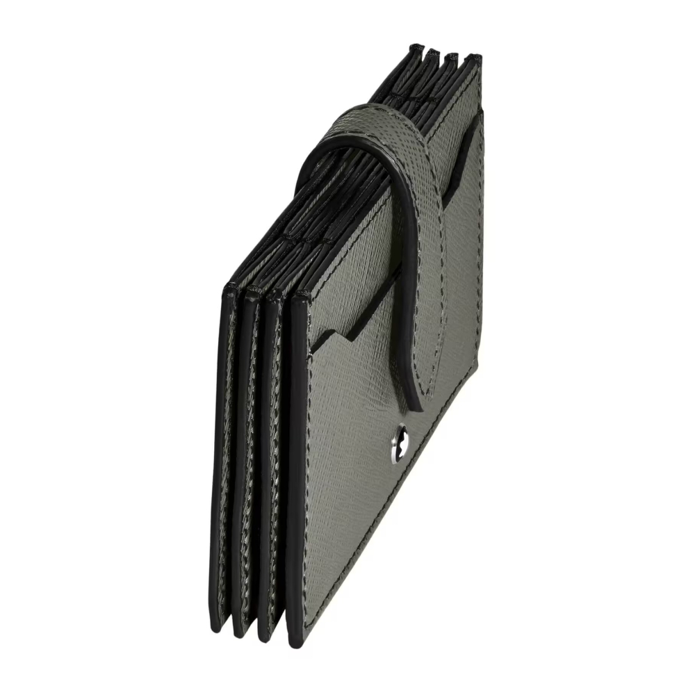 Designed to slip smoothly into most pockets, this wallet is crafted from Saffiano-embossed leather in a stylish medium grey hue. Inside, you’ll find five slots for credit cards and three additional pockets, providing ample space to organise banknotes and small items efficiently. A press button closure keeps your essentials secure and adds a true Montblanc touch to your everyday actions.