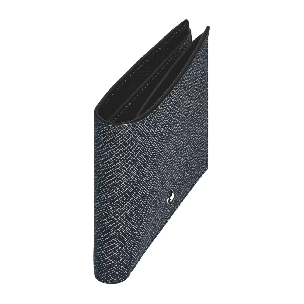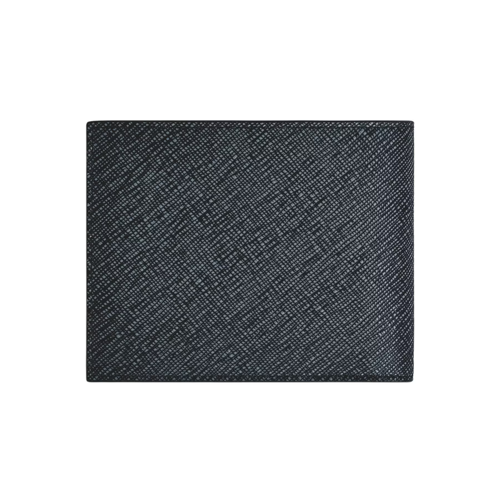 A pocket-friendly essential, this wallet is crafted from two-tone embossed sartorial leather in a classic combination of blue and black. Designed for effortless organisation, it features slots for up to six credit cards, two compartments for banknotes, and two additional pockets for smaller items, offering practicality with a refined touch.
