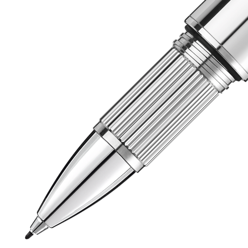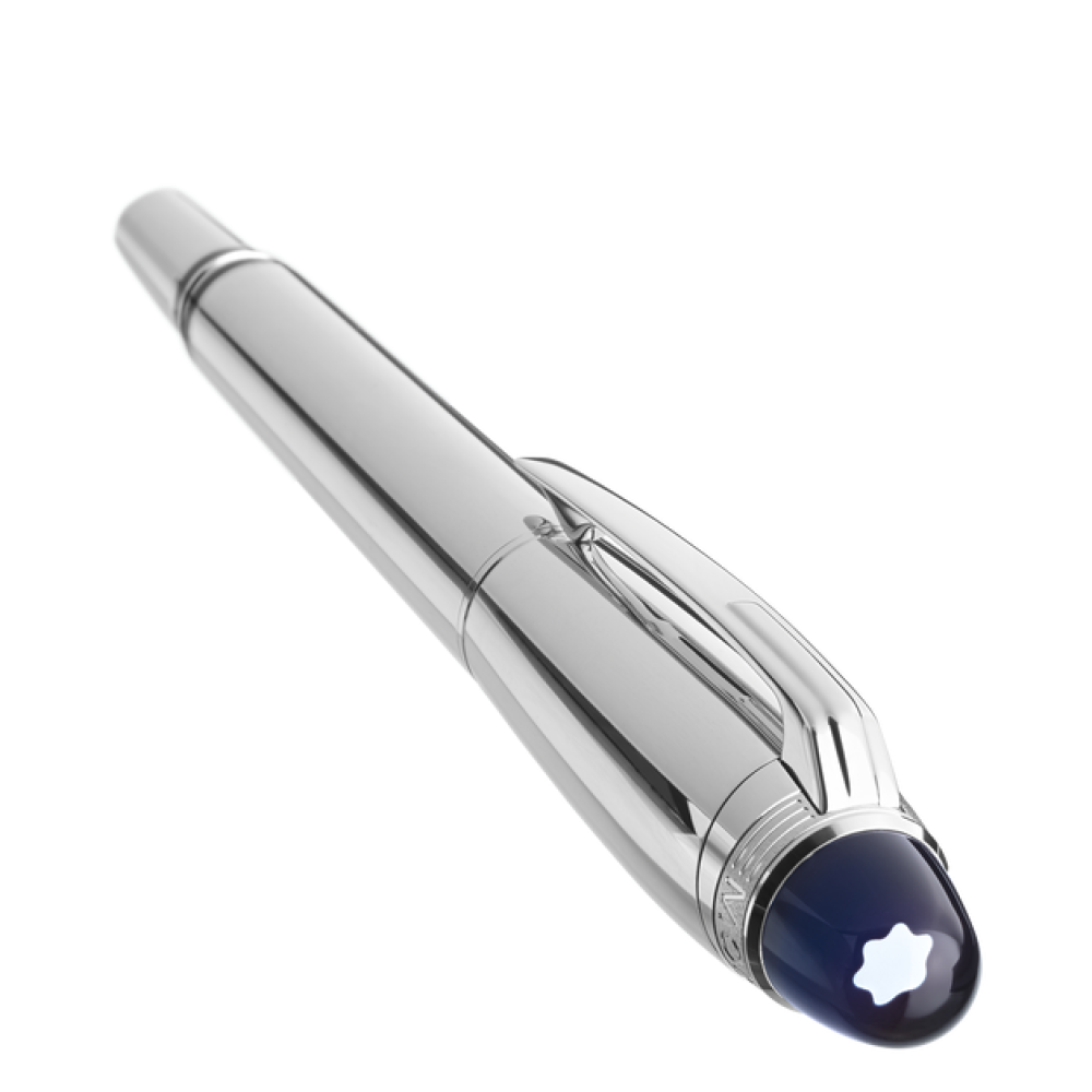 The new StarWalker is about walking amid the stars. It's about exploring the cosmos and foreign galaxies. about being part of one of the most mysterious and powerful of human kind’s adventures: space exploration. The collection's new design celebrates the immense emotion. described by all space travelers. of seeing our blue planet floating in the vast expanse of space. The unique StarWalker emblem technology features a blue translucent dome beneath the Montblanc emblem. reminiscent of the Earth emerging above the lunar horizon. The StarWalker Metal comes with a platinum-coated cap. fittings and barrel.