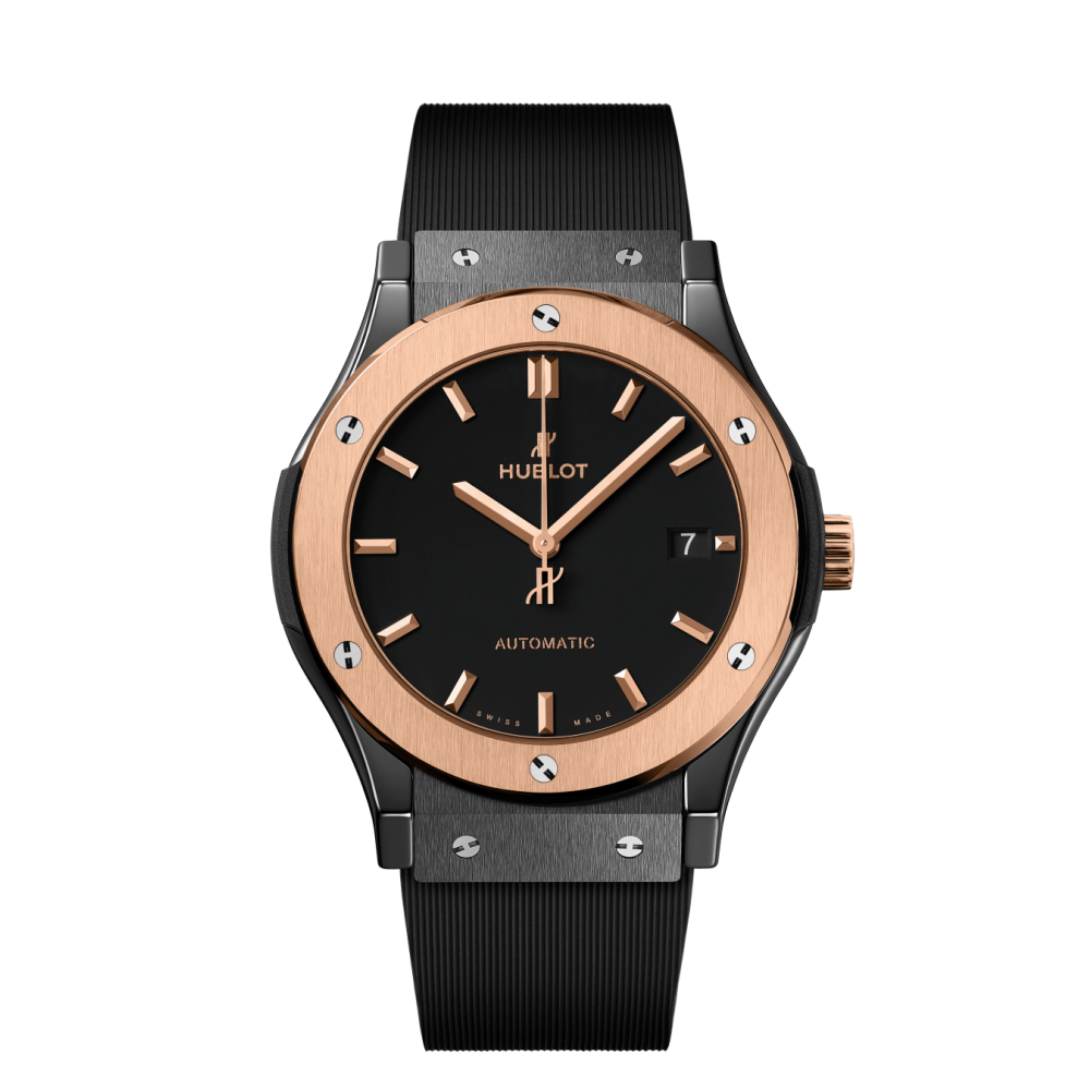 1980 yılında Carlo Crocco tarafından İsviçre’de kurulan dünyaca ünlü saat markası Hublot, ileri teknolojili üretim tesislerinde Unico kronograf mekanizmaları, komplikasyonları ve gelenekleri, gelecekle buluşturan yenilikçi araştırmaların sonucu yeni tasarımlar geliştirmesiyle ünlüdür. 2005 yılında, zarif ve çağdaş bir tasarıma sahip bir kronograf olan Big Bang koleksiyonu uluslararası bir başarı yakalamıştır. Şimdi LVMH grubuna ait olan Hublot daha önce tanıtılan Big Bang koleksiyonu ile birlikte Classic Fusion, King Power ve markanın diğer birçok koleksiyonu ile birlikte bu yolculuğu gerçek bir başarı hikayesine dönüştürmüştür.581.CO.1181.RX referans numaralı saat, Hublot markasının Classic Fusion koleksiyonuna aittir. HUB2912 Quartz mekanizması ile, Pilli olan Hublot Classic Fusion Ceramic King Gold, Siyah Seramik bir kasaya sahip olup kasa çapı 33mm’dir. 50 metreye kadar su basıncına dayanıklı olan model, Siyah Kauçuk ile sunulmaktadır.