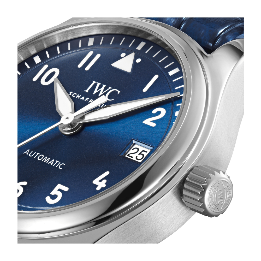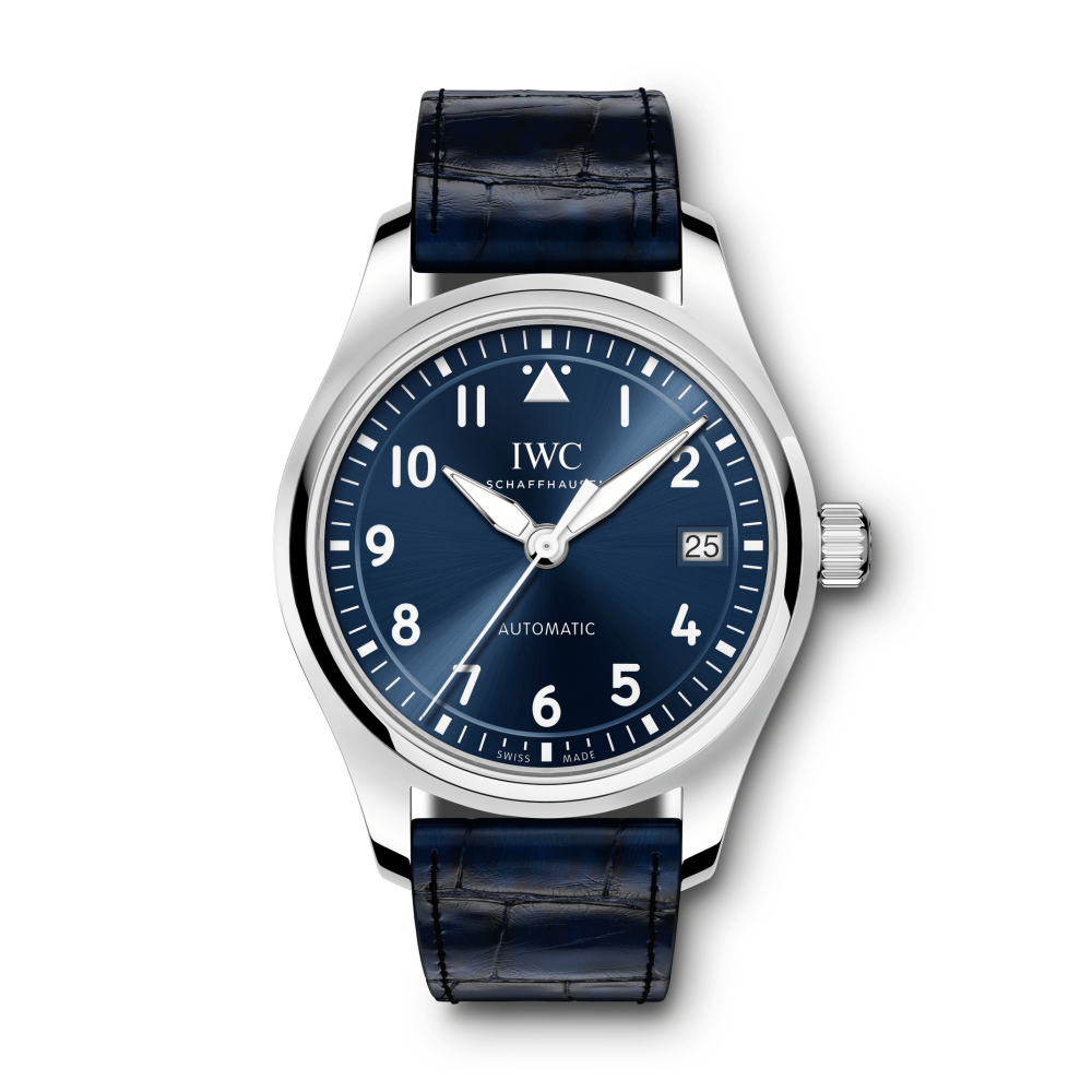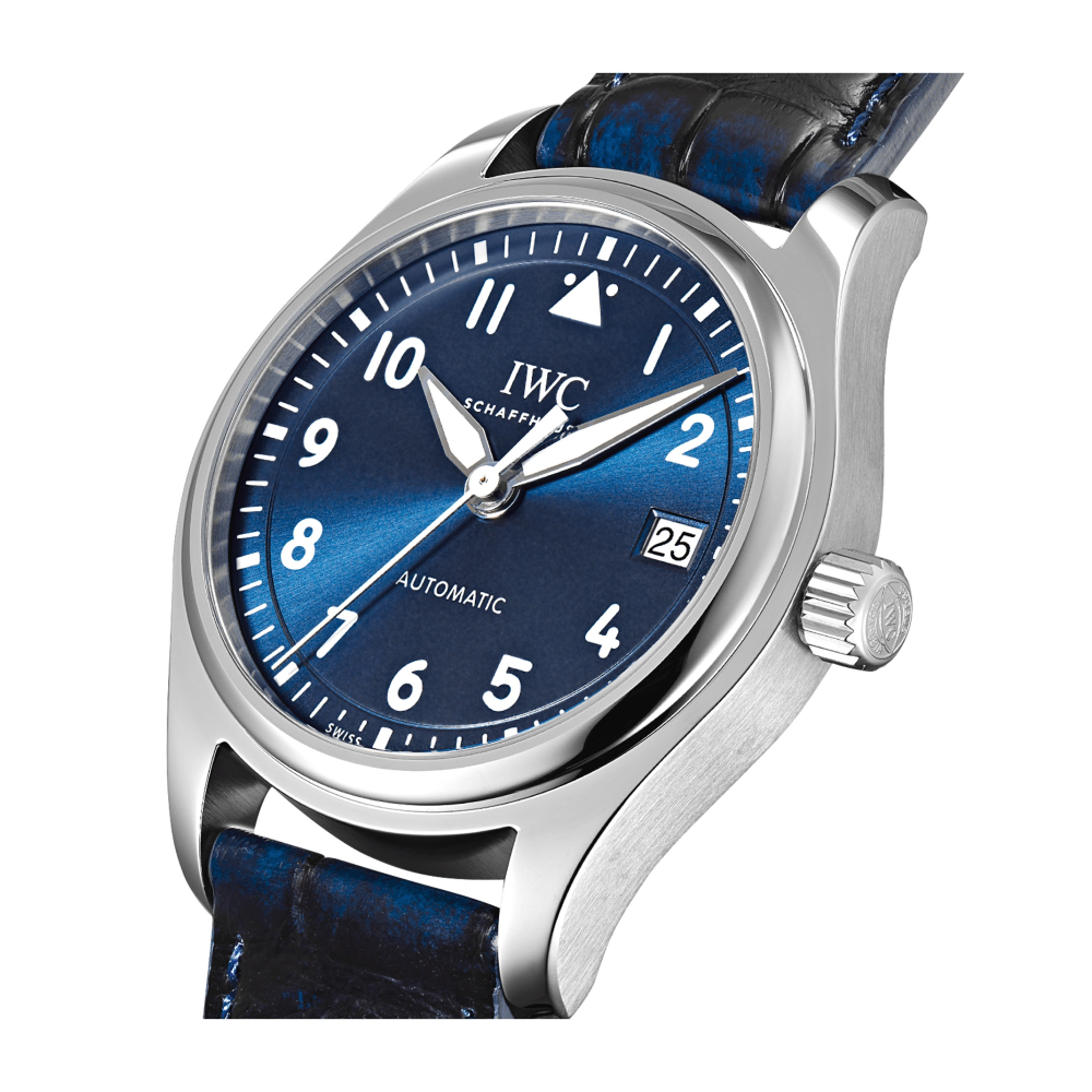 Tipik bir Pilot Saati'nin tasarımını ve tüm özelliklerini sunan saat, çapı sadece 36 milimetre olan kasasıyla daha ince bilekler için ideal.