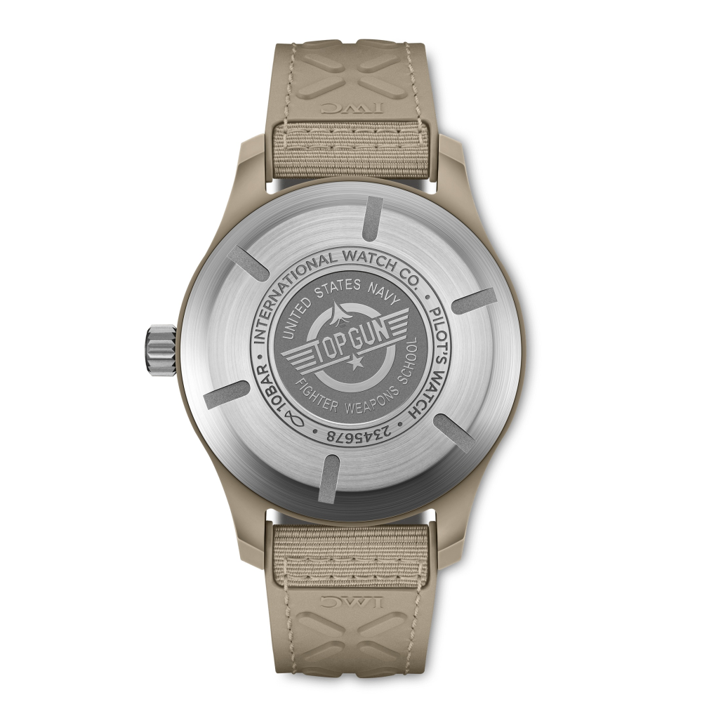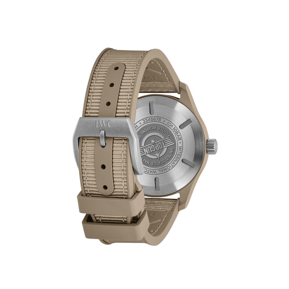 Pilot’s Watch Automatic 41 TOP GUN Mojave Desert, kum rengi seramik kasaya ve yumuşak kahverengi kadrana sahip.