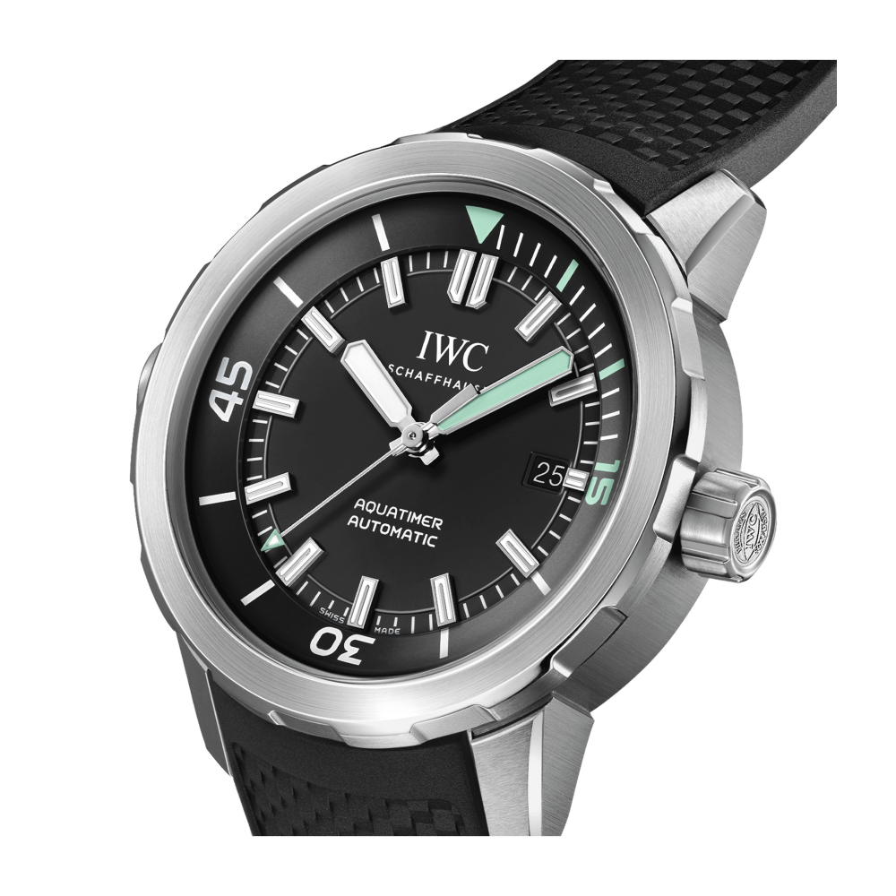 IWC üretimi 32111 kalibre ile güçlendirilen bu Aquatimer Otomatik, paslanmaz çelik kasaya, siyah kadrana ve siyah kauçuk kayışa sahip.