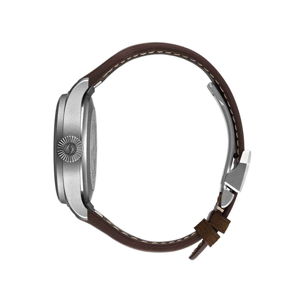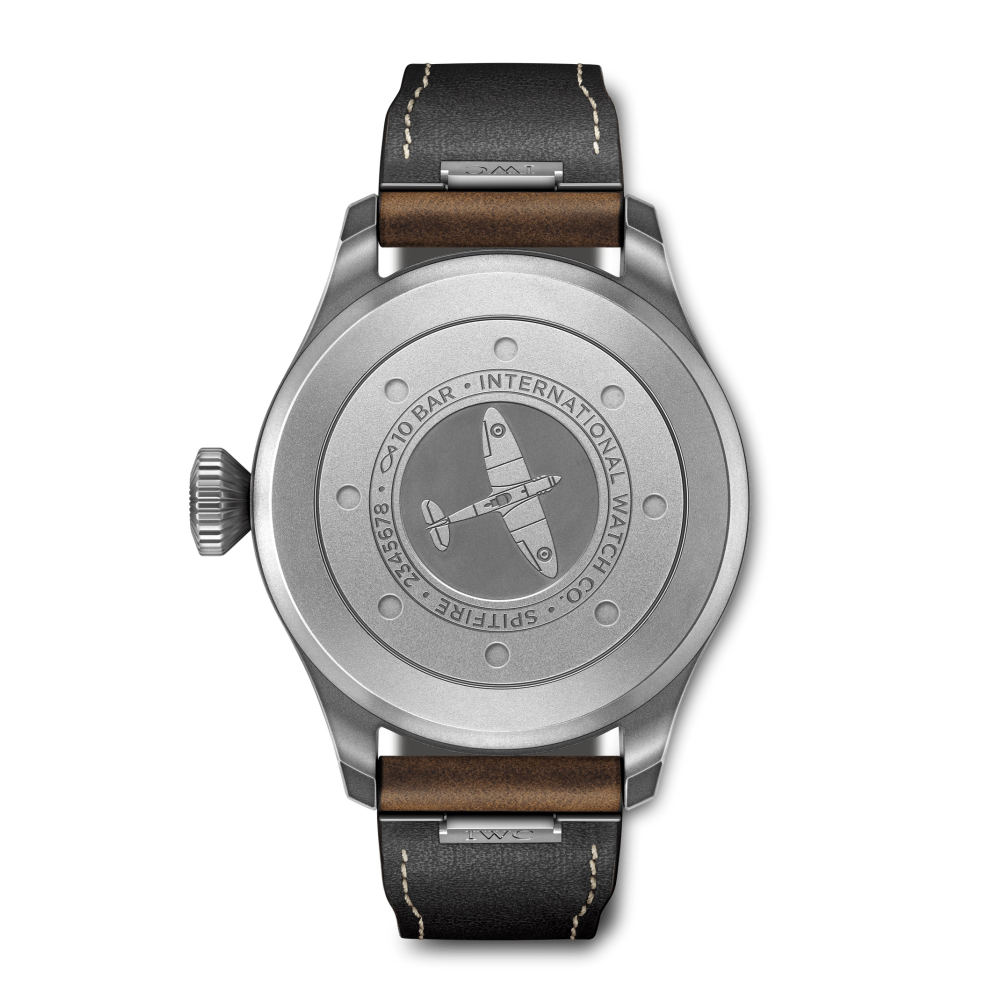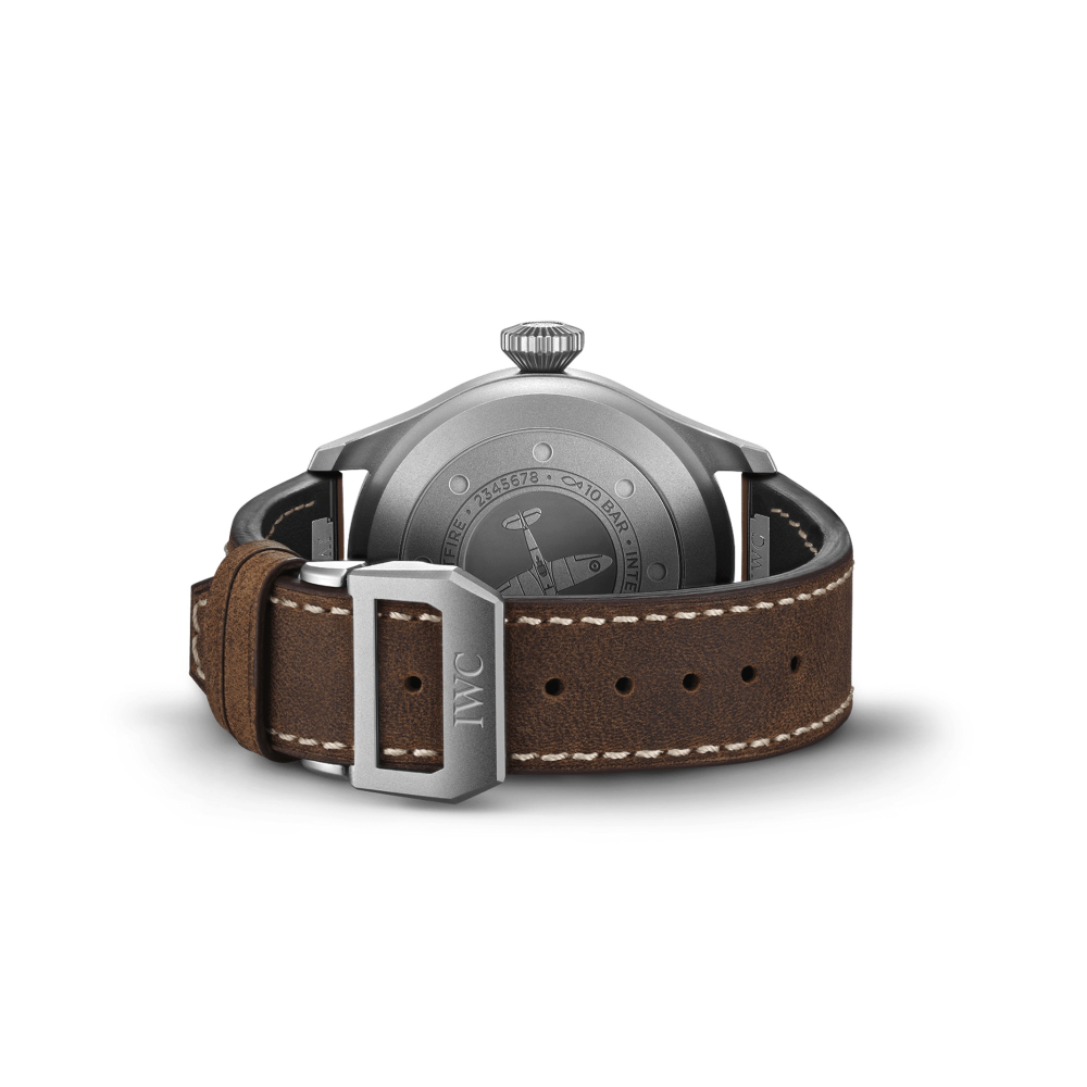 Big Pilot’s Watch 43 Spitfire, tarihi gözlem saatlerinin tasarımında siyah kadranı ve mat gri titanyum kasasıyla askeri bir estetiğe sahip.