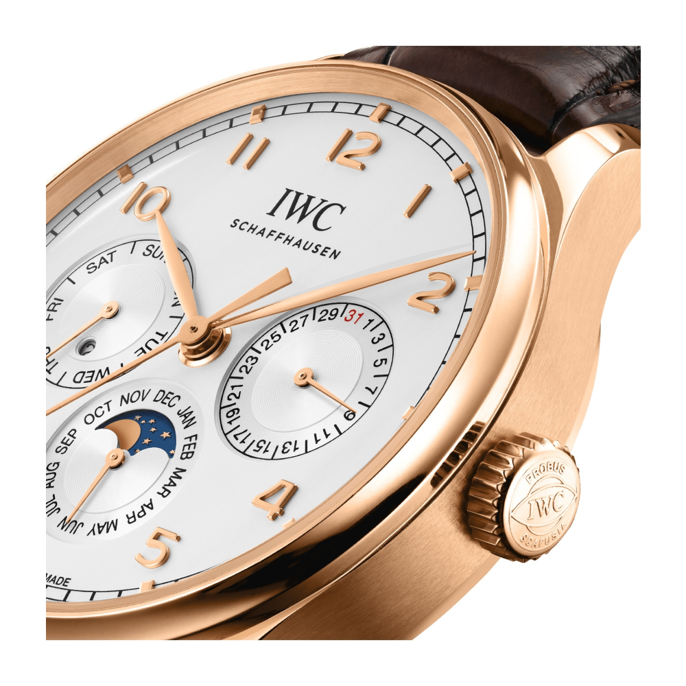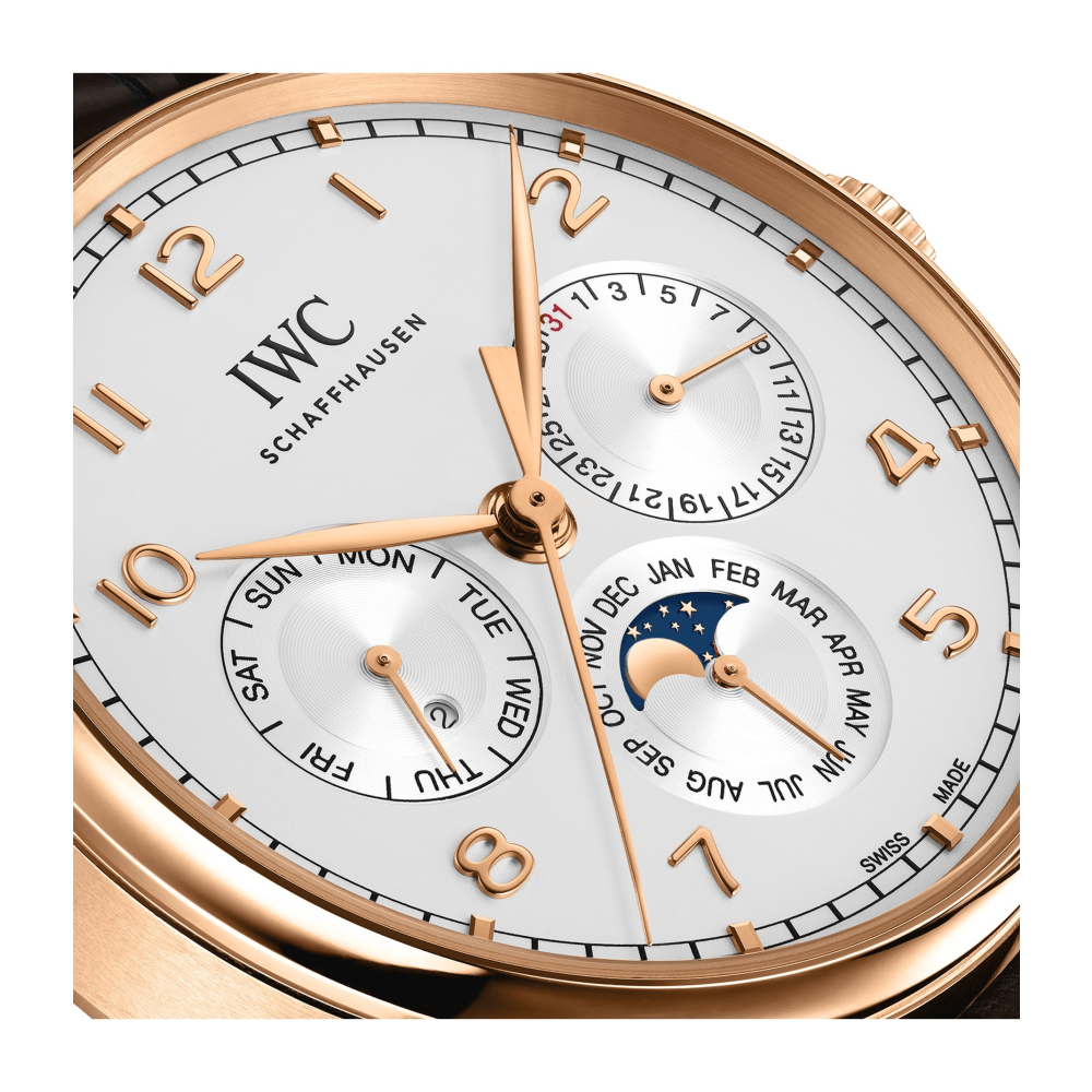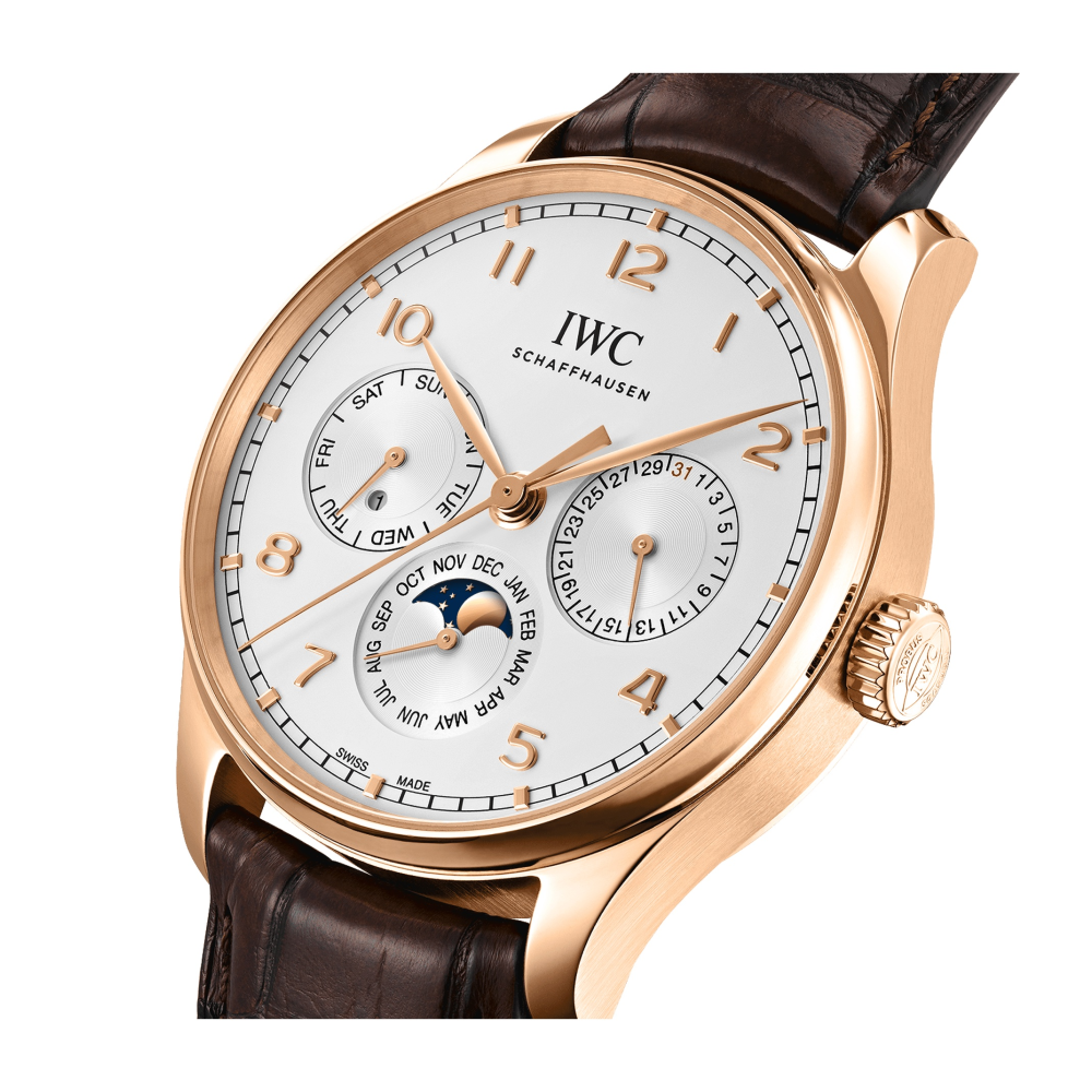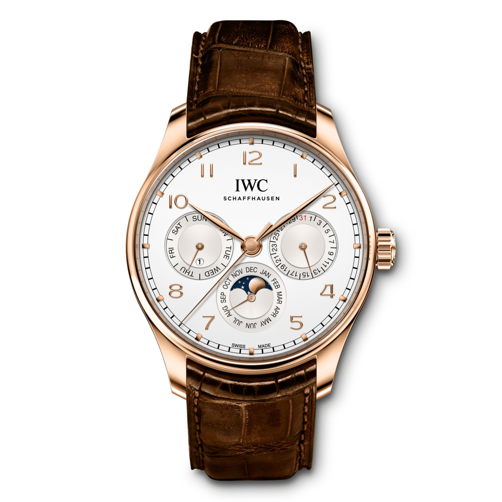 IWC, Portugieser Perpetual Calendar 42 modeliyle bu popüler komplikasyonu 82000 kalibrelik aileden kendi ürettiği bir mekanizmaya entegre etti.