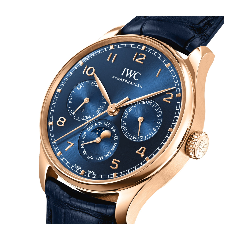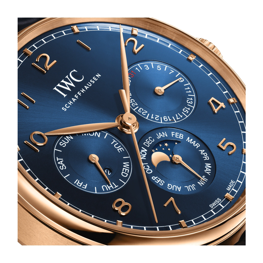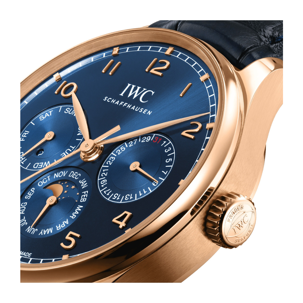 IWC, Portugieser Perpetual Calendar 42 modeliyle bu popüler komplikasyonu 82000 kalibrelik aileden kendi ürettiği bir mekanizmaya entegre etti.