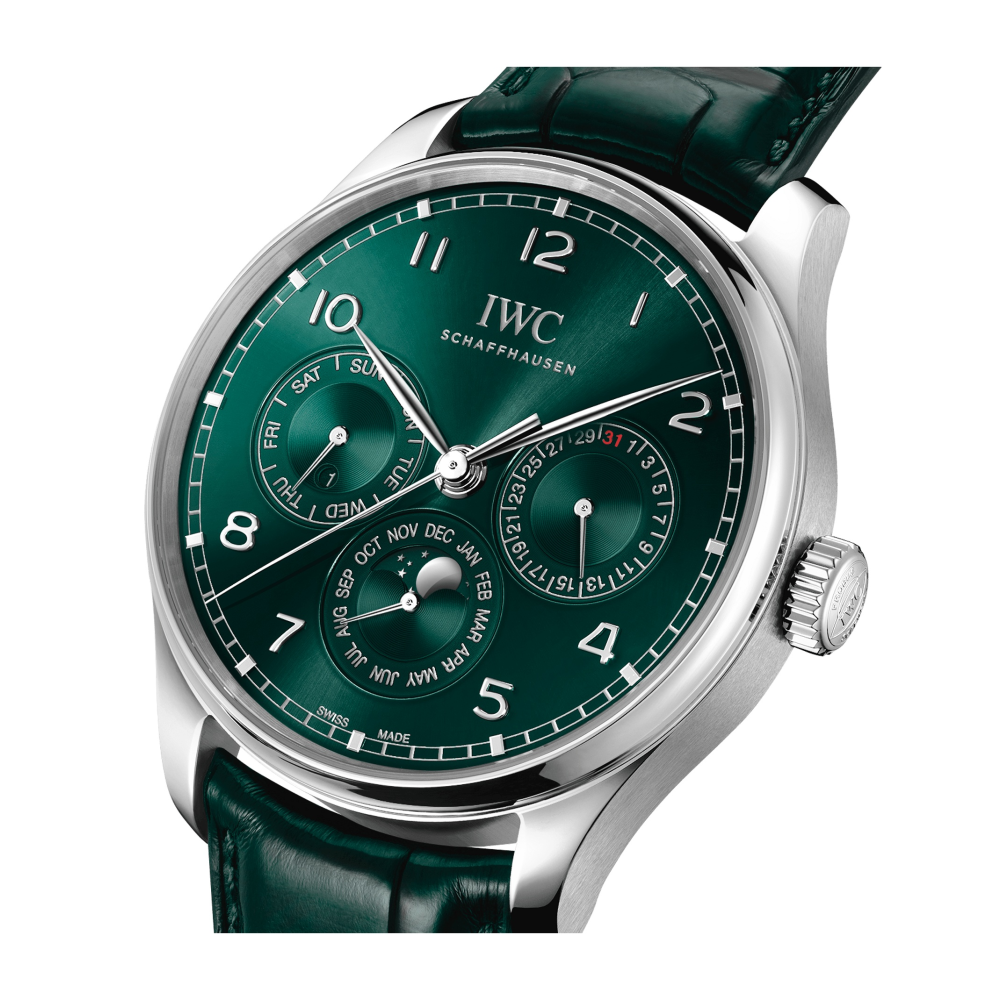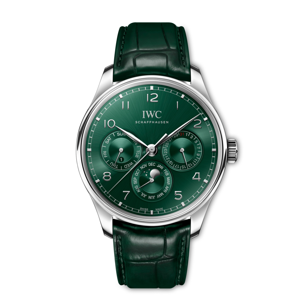 This version of the Portugieser Perpetual Calendar 42 presents the popular complication on a green dial.