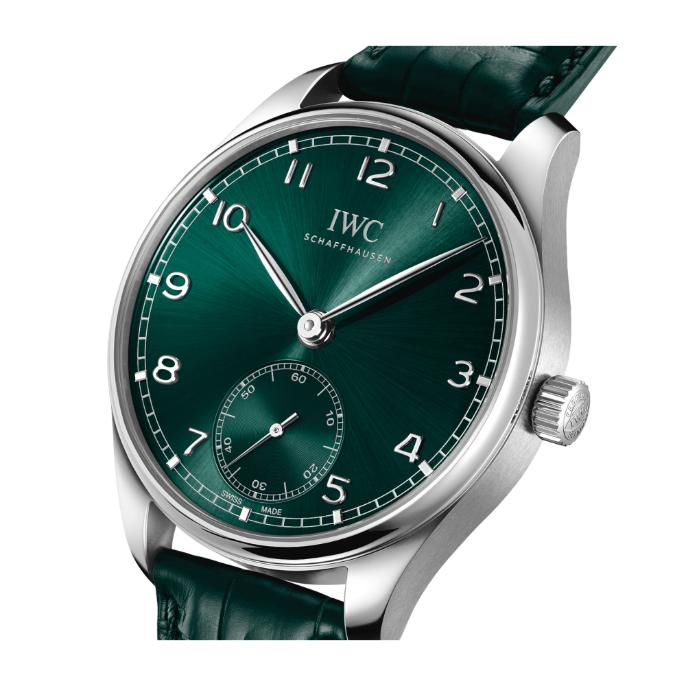 Portugieser Automatic 40'ın bu versiyonunda yeşil kadran ve yeşil timsah derisi kayış yer alıyor.