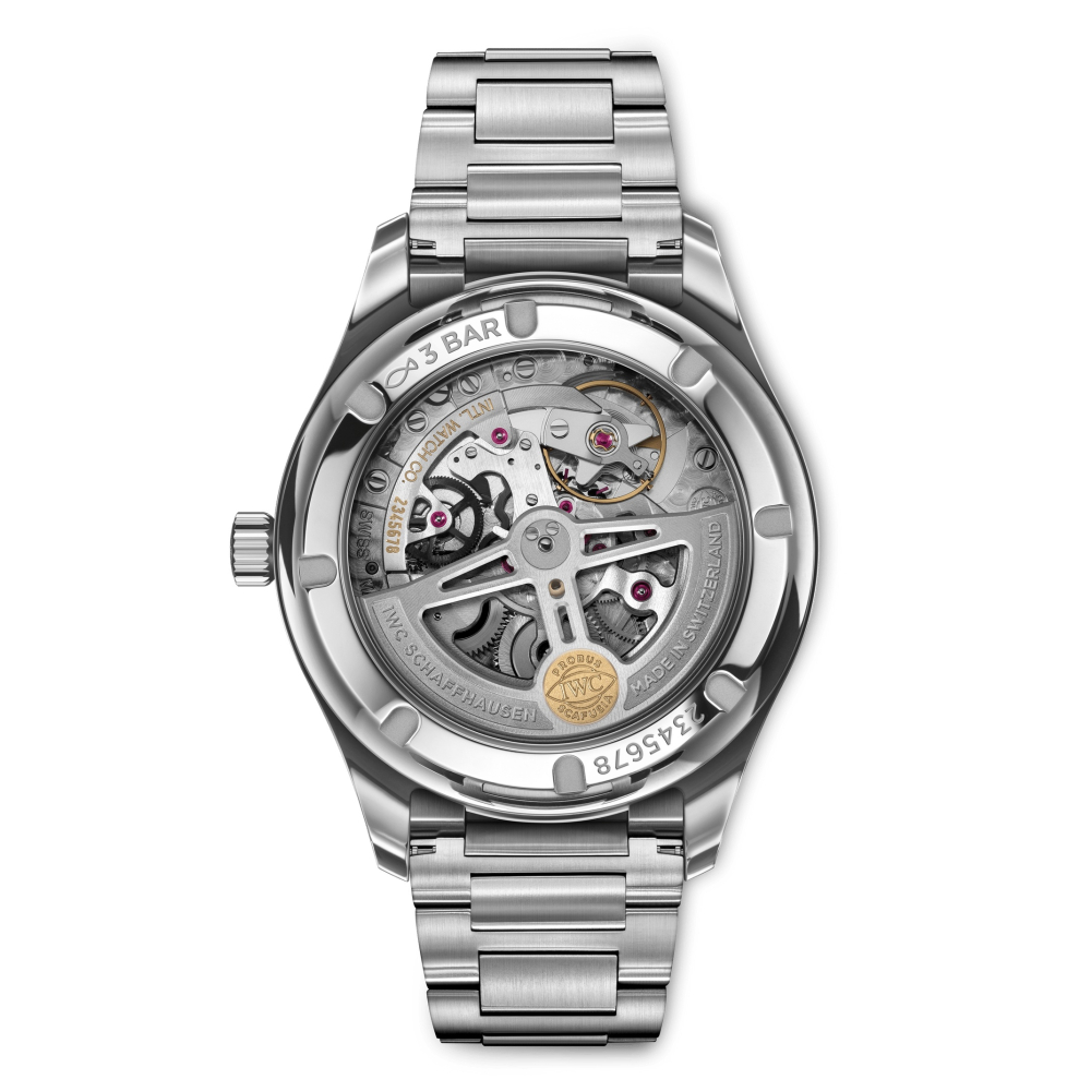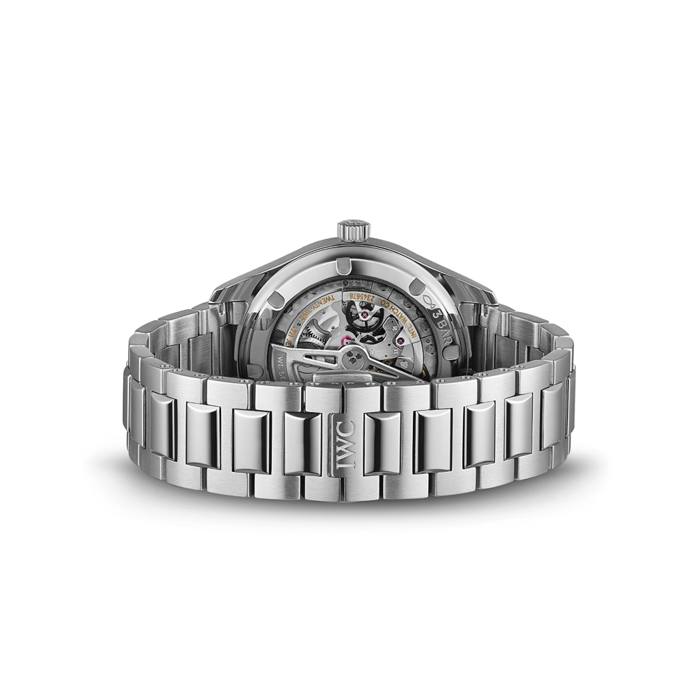 Yüksek kaliteli paslanmaz çelik bilezik, Portugieser Automatic 40'ı son derece çok yönlü bir saate dönüştürüyor ve daha sportif bir dokunuş katıyor.