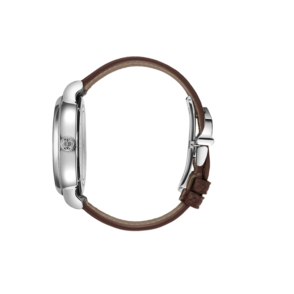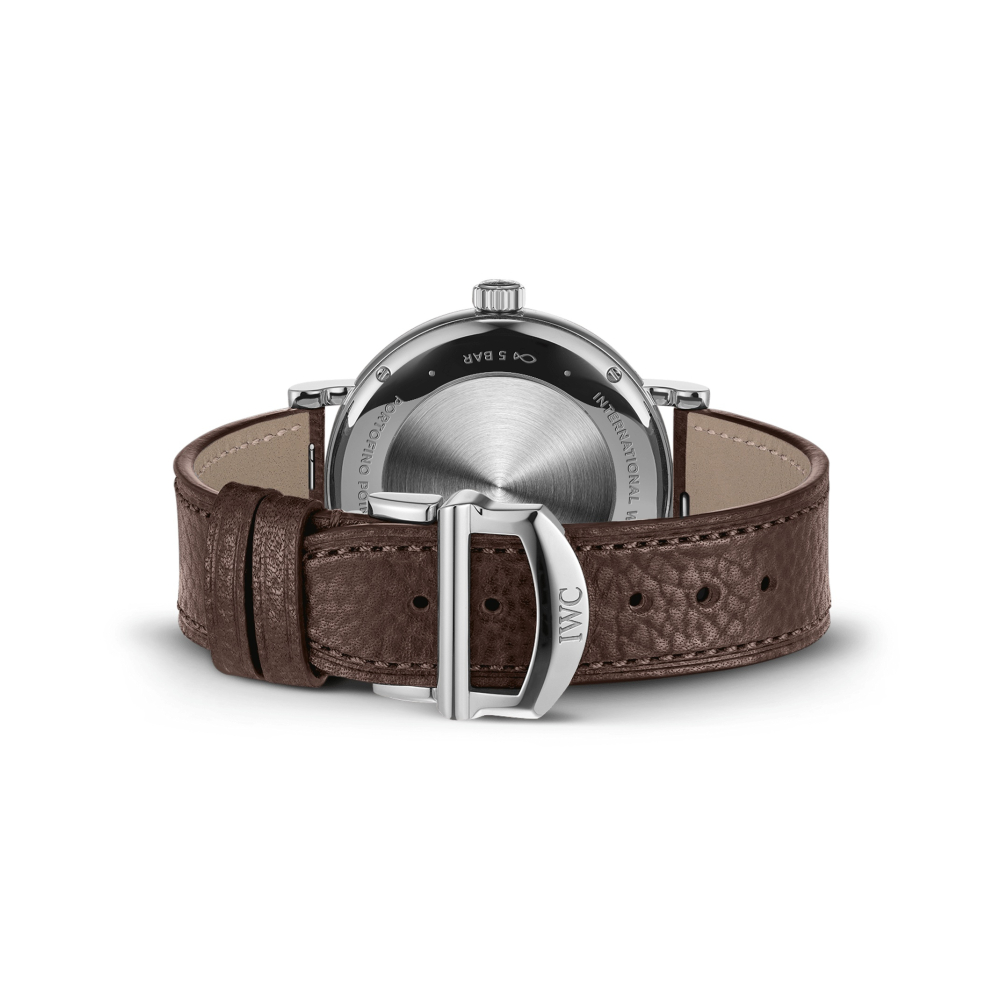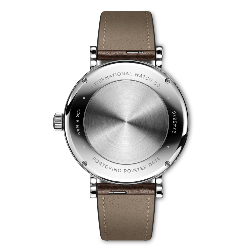 Portofino Otomatik Pointer Date, saat 6 konumunda analog, zıplayan bir işaretçi-tarih göstergesine sahiptir.