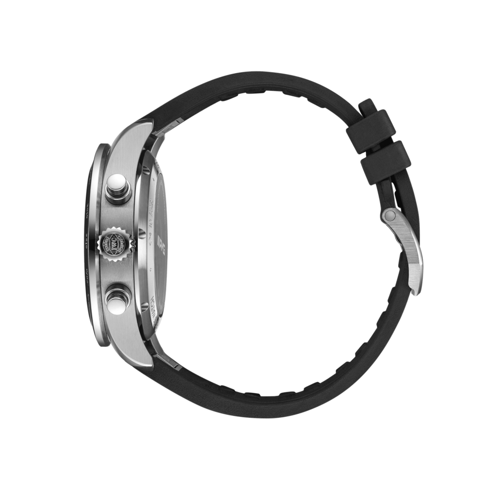 Pilot’s Watch Performance Chronograph 41 AMG, 41 milimetre titanyum kasa, siyah kadran, nikel noir kollar ve aplikler ile siyah kauçuk kayışa sahip.