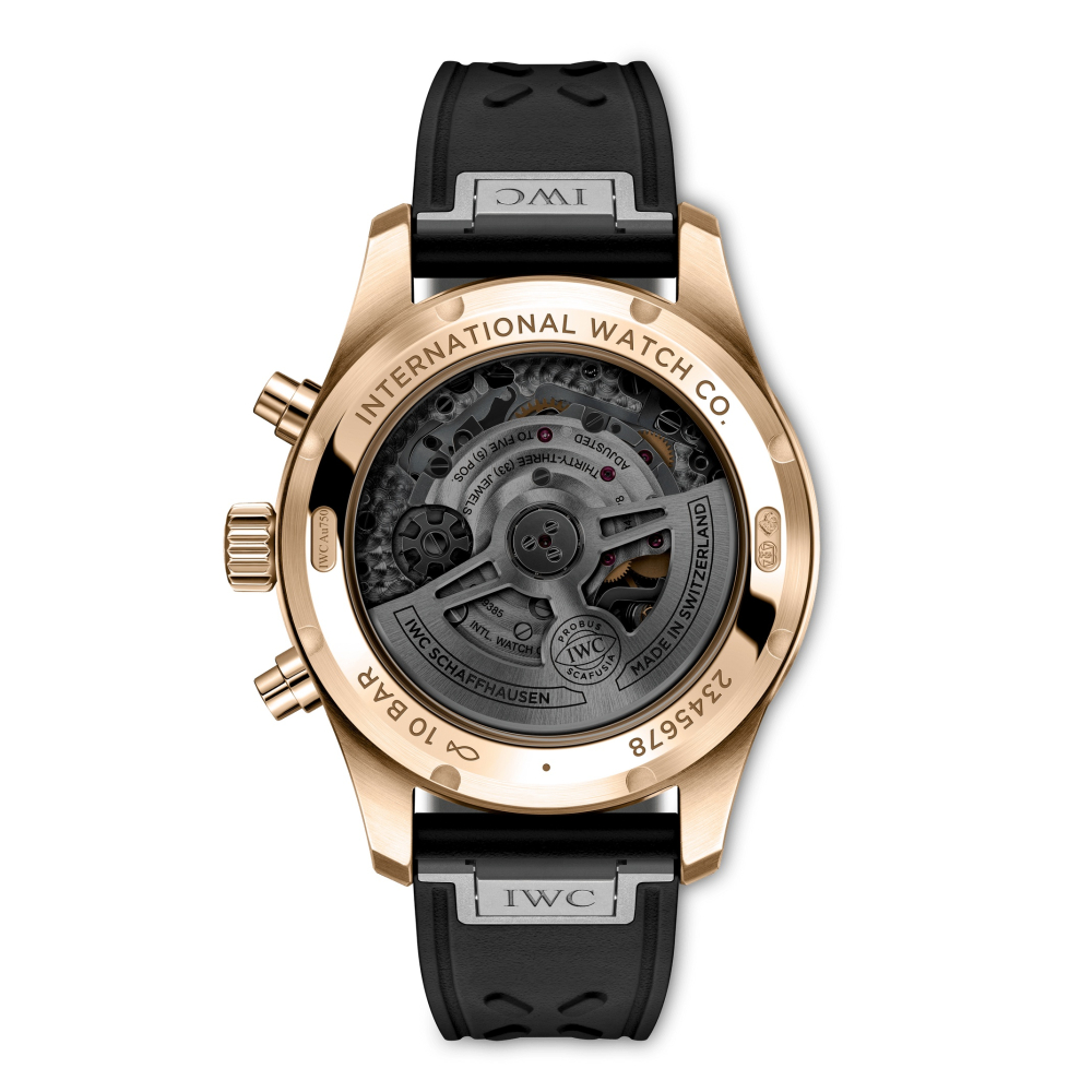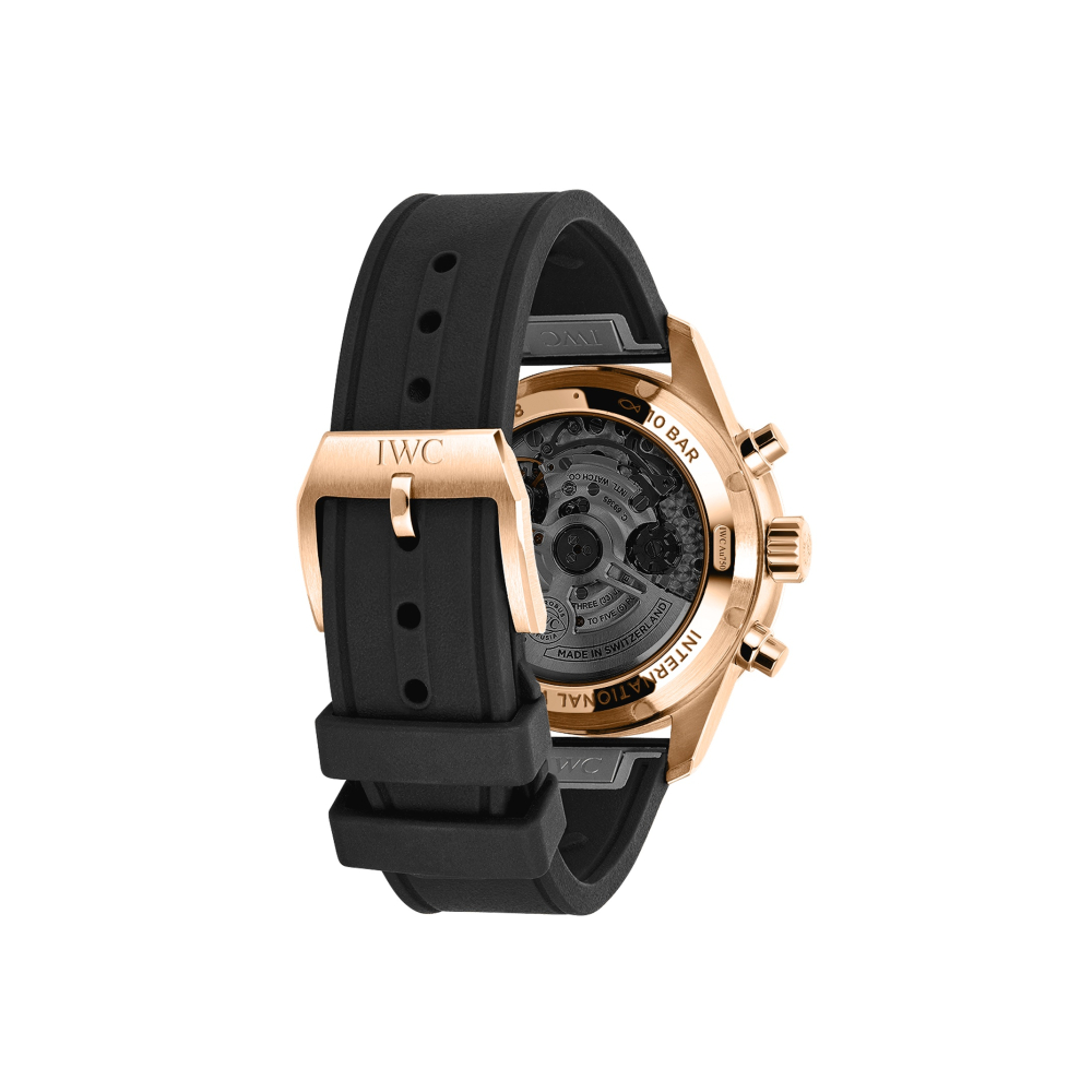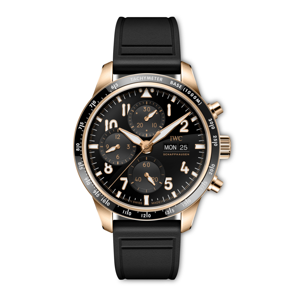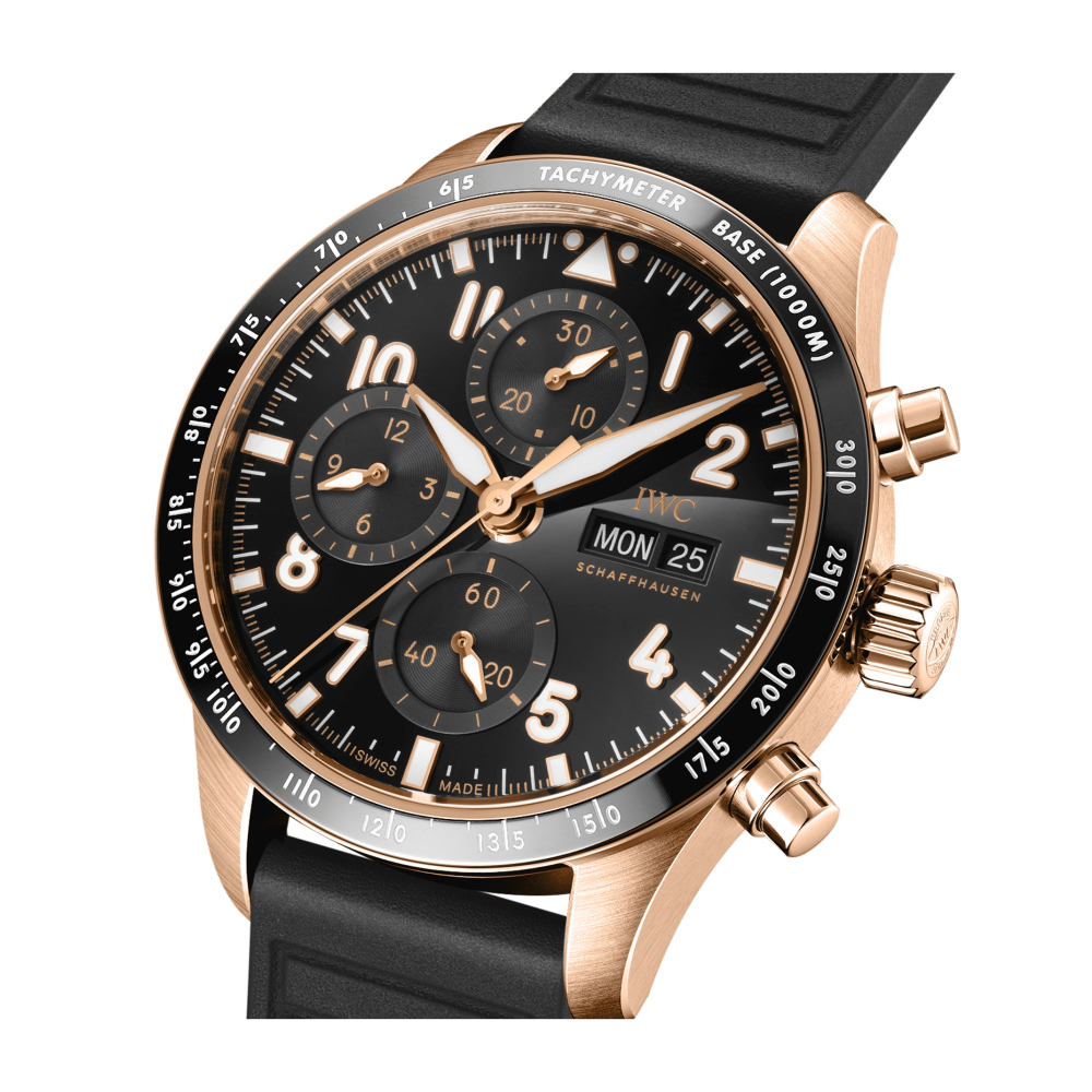 Pilot’s Watch Performance Chronograph 41, 18 ayar 5N altından yapılmış bir kasaya, siyah lake kadrana ve altın kaplama kollara ve aplikelere sahiptir.