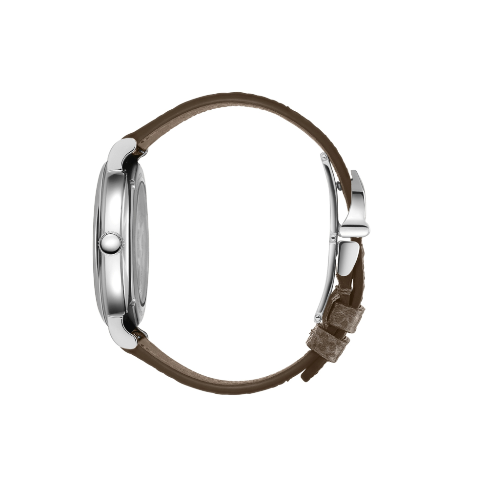 Portofino Automatic 37, IWC üretimi 32111 kalibre ve hareketi gösteren şeffaf safir cam arka yüze sahip.