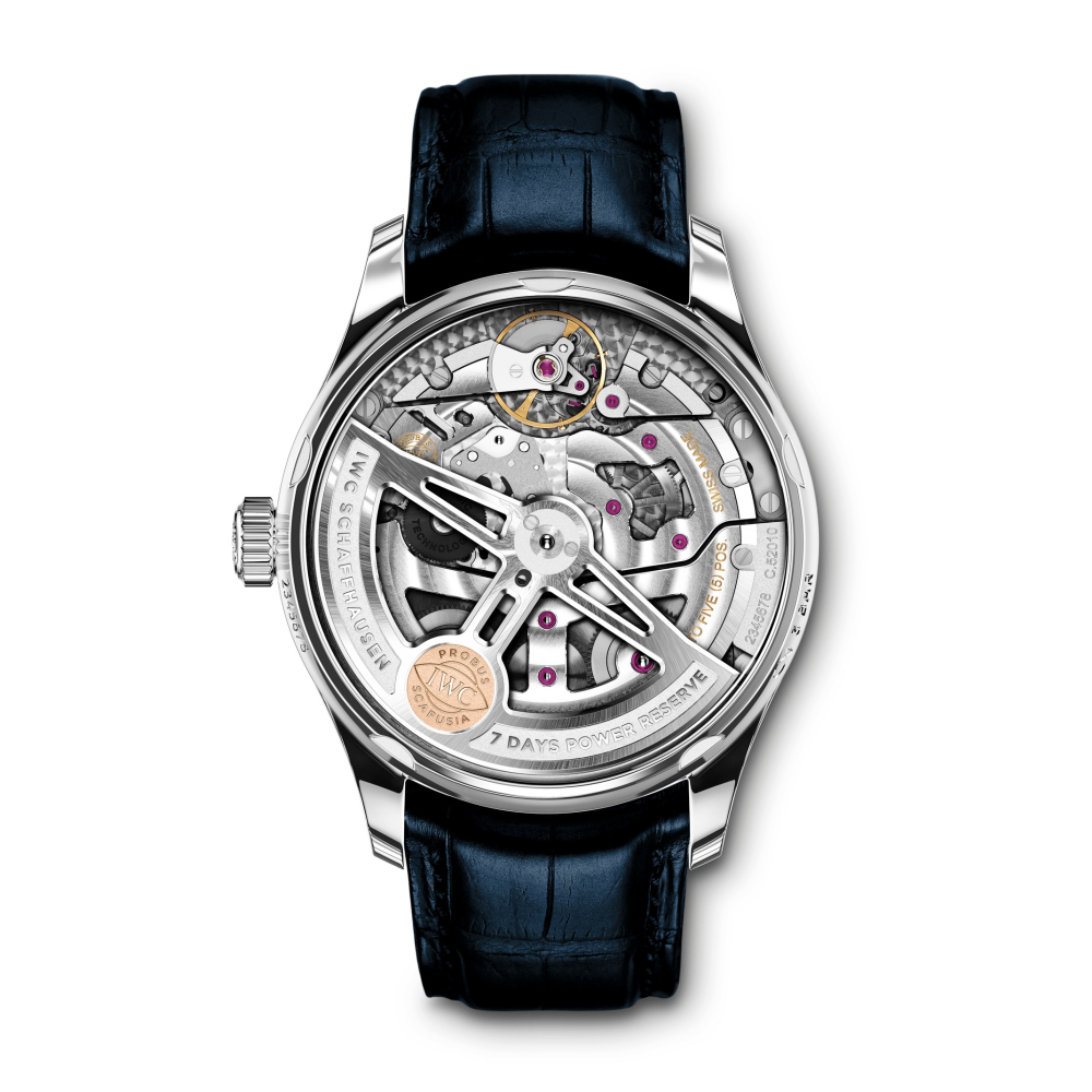 Demiryolu ray halkası, aplike Arap rakamları, feuille kolları: Hiçbir özellik, tipik bir IWC Portugieser'in belirgin tasarım ipuçlarını bu kadar etkili bir şekilde ifade edemez.