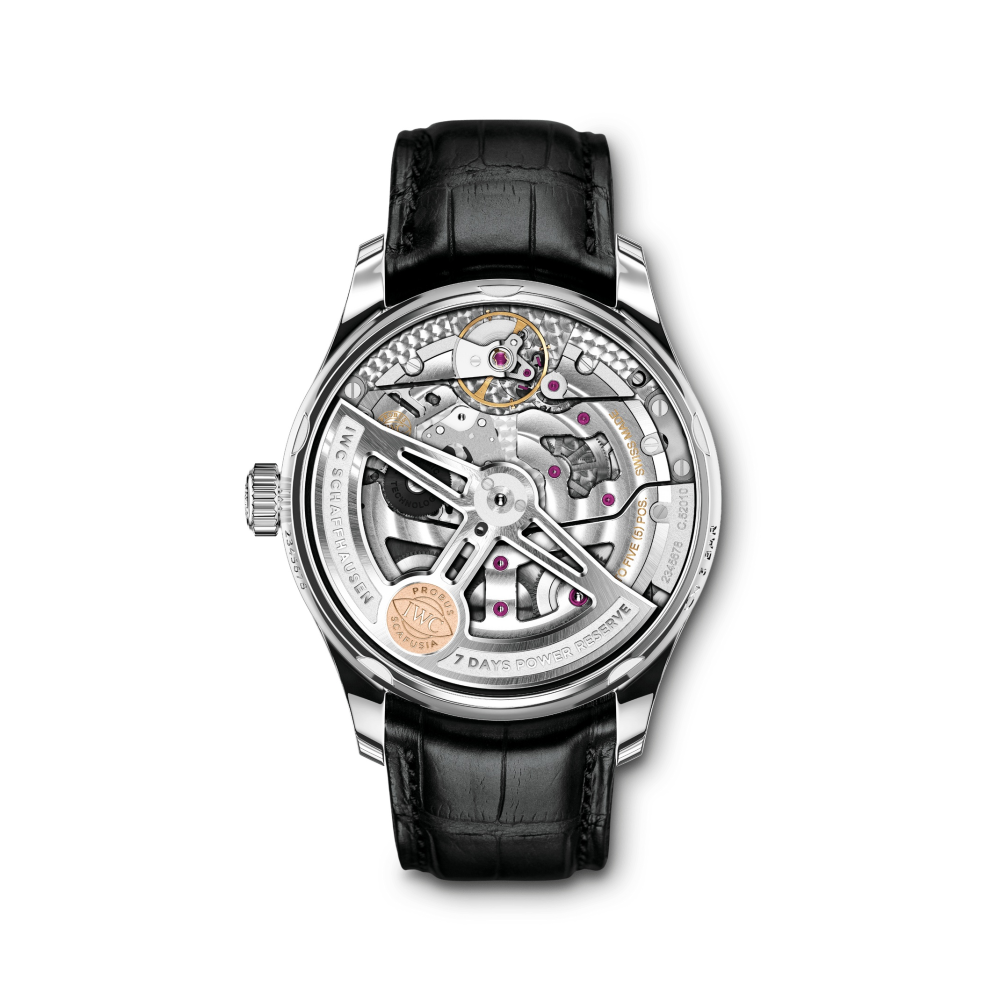 Demiryolu ray halkası, aplike Arap rakamları, feuille kolları: Hiçbir özellik, tipik bir IWC Portugieser'in belirgin tasarım ipuçlarını bu kadar etkili bir şekilde ifade edemez.