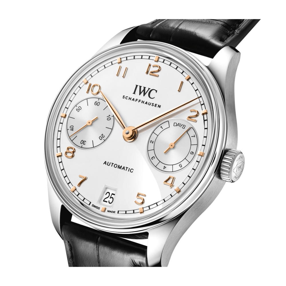 Portugieser'in kökeni, IWC Schaffhausen'in kronometre hassasiyetinde, dikkat çekici büyüklükte bir kol saati yaratmak için yüksek hassasiyetli bir cep saati mekanizması kullandığı 1930'ların sonlarına dayanır. İlk olarak 2000 yılında piyasaya sürülen Portugieser Automatic 42, açık ve dengeli bir kadrana, saat 3 konumunda güç rezervi göstergesine ve saat 9 konumunda karşı tarafta küçük saniyelere sahiptir.