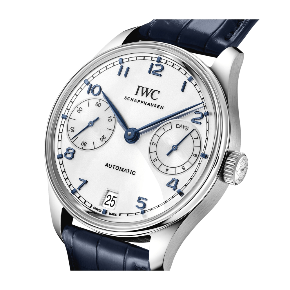 Portugieser'in kökeni, IWC Schaffhausen'in kronometre hassasiyetinde, dikkat çekici büyüklükte bir kol saati yaratmak için yüksek hassasiyetli bir cep saati mekanizması kullandığı 1930'ların sonlarına dayanır. İlk olarak 2000 yılında piyasaya sürülen Portugieser Automatic 42, açık ve dengeli bir kadrana, saat 3 konumunda güç rezervi göstergesine ve saat 9 konumunda karşı tarafta küçük saniyelere sahiptir.
