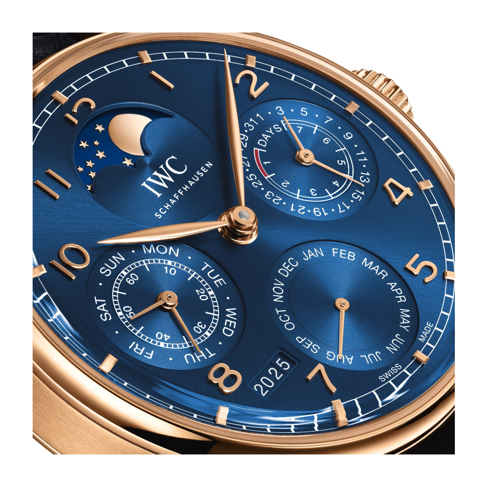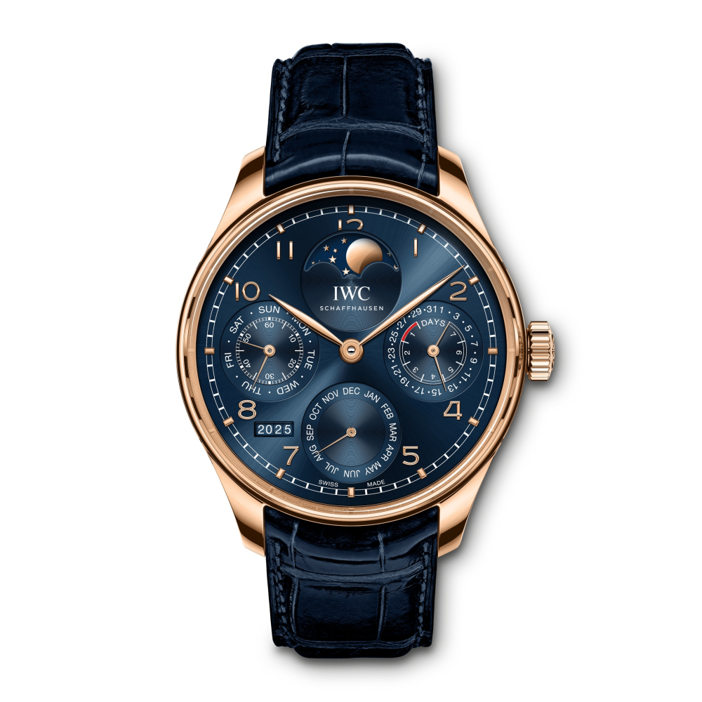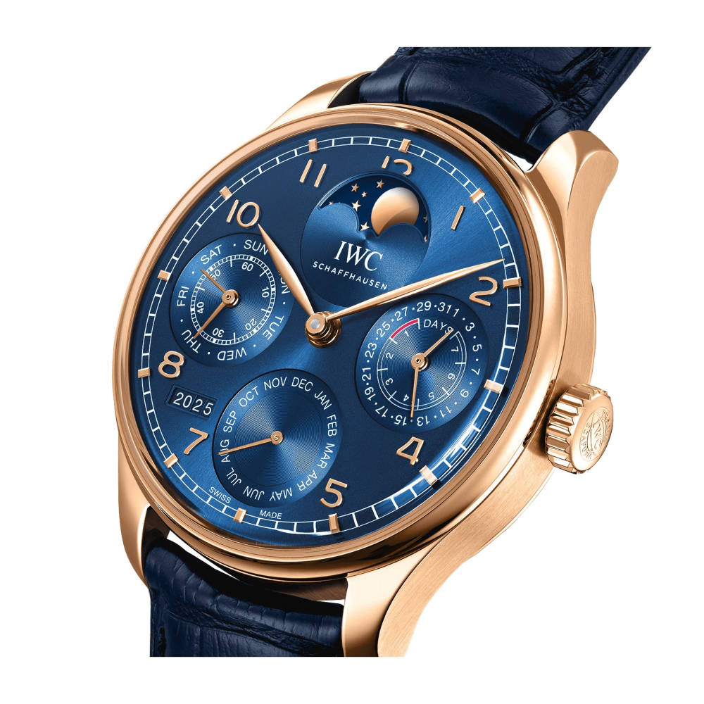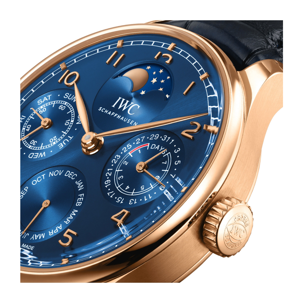 Portugieser Perpetual Calendar'ın bu özel edisyonu, koyu mavi ve altın rengindeki denizcilik tasarımıyla göz kamaştırıyor.