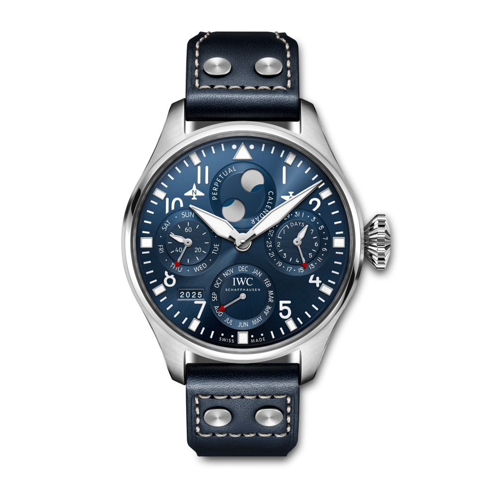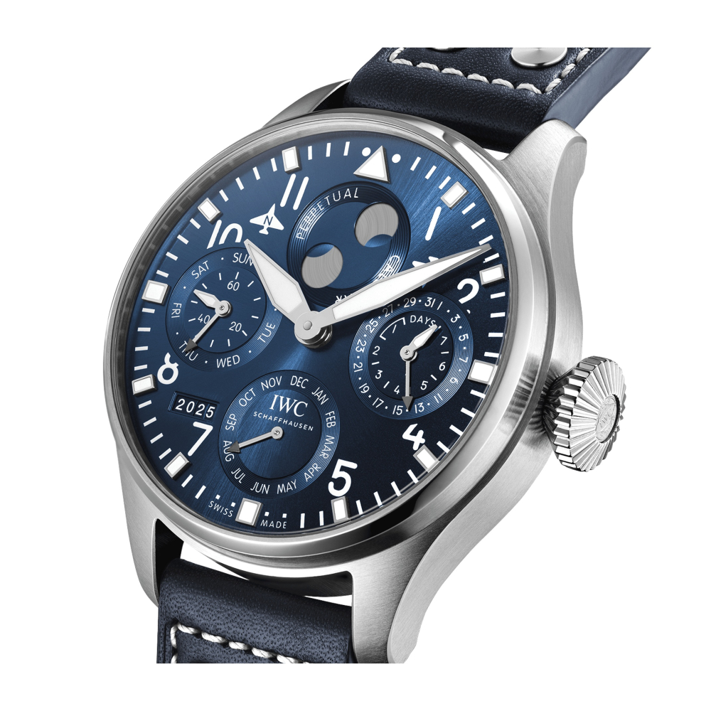 Paslanmaz çelikten üretilen mavi kadranlı Big Pilot’s Watch Perpetual Calendar, Big Pilot’s koleksiyonundaki uzun süredir devam eden sürekli takvimli saat geleneğini sürdürüyor.