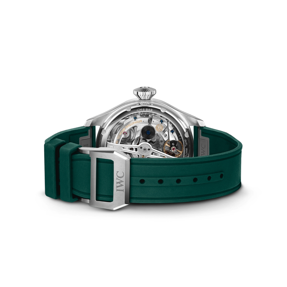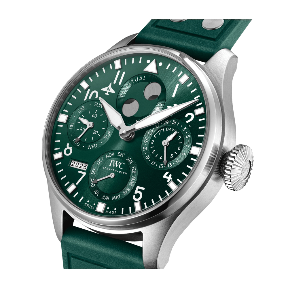 Yarış yeşili kadranlı paslanmaz çelikten üretilen Big Pilot’s Watch Perpetual Calendar, Big Pilot’s koleksiyonundaki uzun süredir devam eden sürekli takvimli saat geleneğini sürdürüyor.