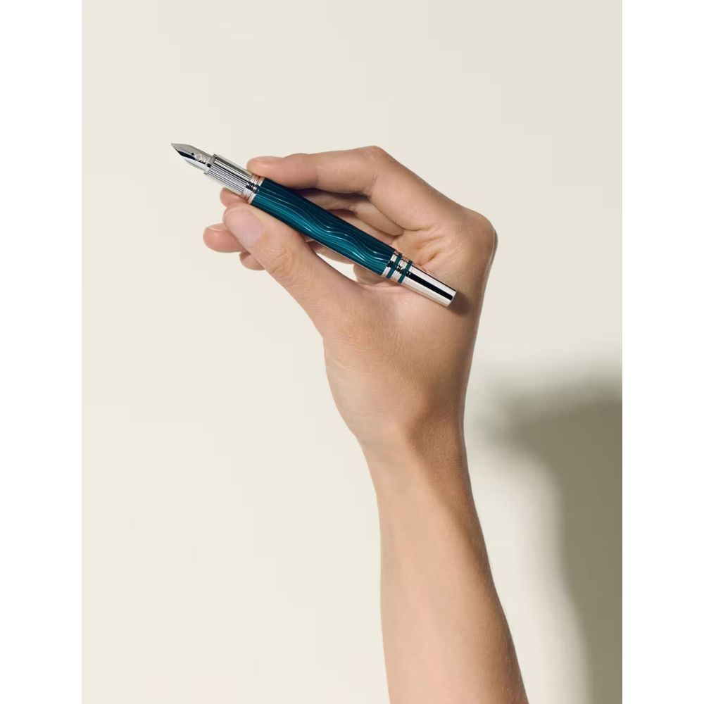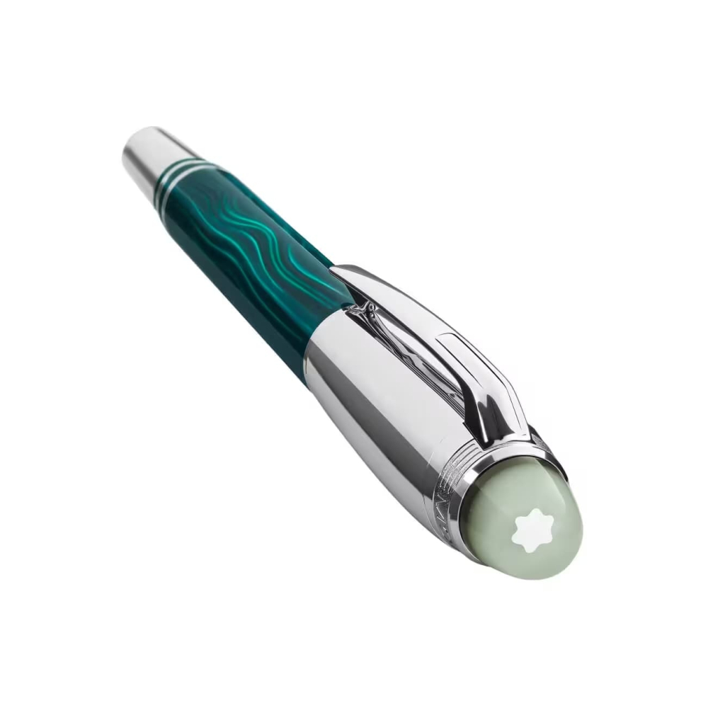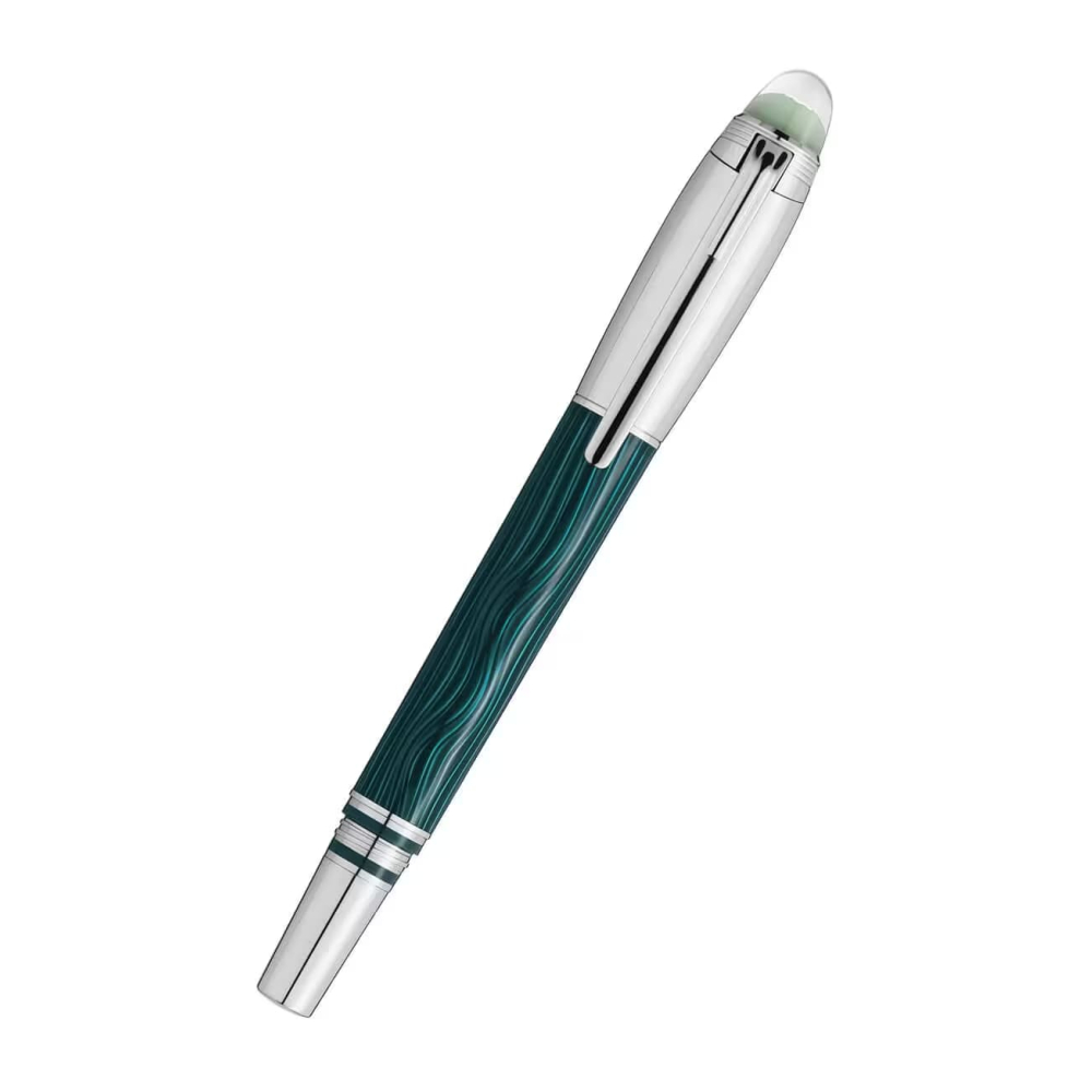 StarWalker PolarGreen koleksiyonu, Kuzey Işıklarının güzelliğini hayata geçiriyor. İnsanlar yeryüzünde gökyüzüne bakarak bu muhteşem gösteriye tanık olurken, hayranlık dolu bir dünyaya yolculuk edebilirler. Kapak üstündeki kubbe şeffaf reçineden yapılmıştır ve loş ışıkta parlayarak gece gökyüzünün büyüleyici dans eden auroralarını hatırlatır. Kapak ve bağlantı parçaları platin kaplamalıdır. Gövdedeki guilloche deseni, ışıkların spektral parlaklığını mükemmel bir şekilde yakalar ve koyu yeşil lake kaplama, hoş yansımaları vurgular. Titizlikle el işçiliğiyle üretilen Au585/14k altın uç, zarif bir rodyum kaplamaya sahiptir.