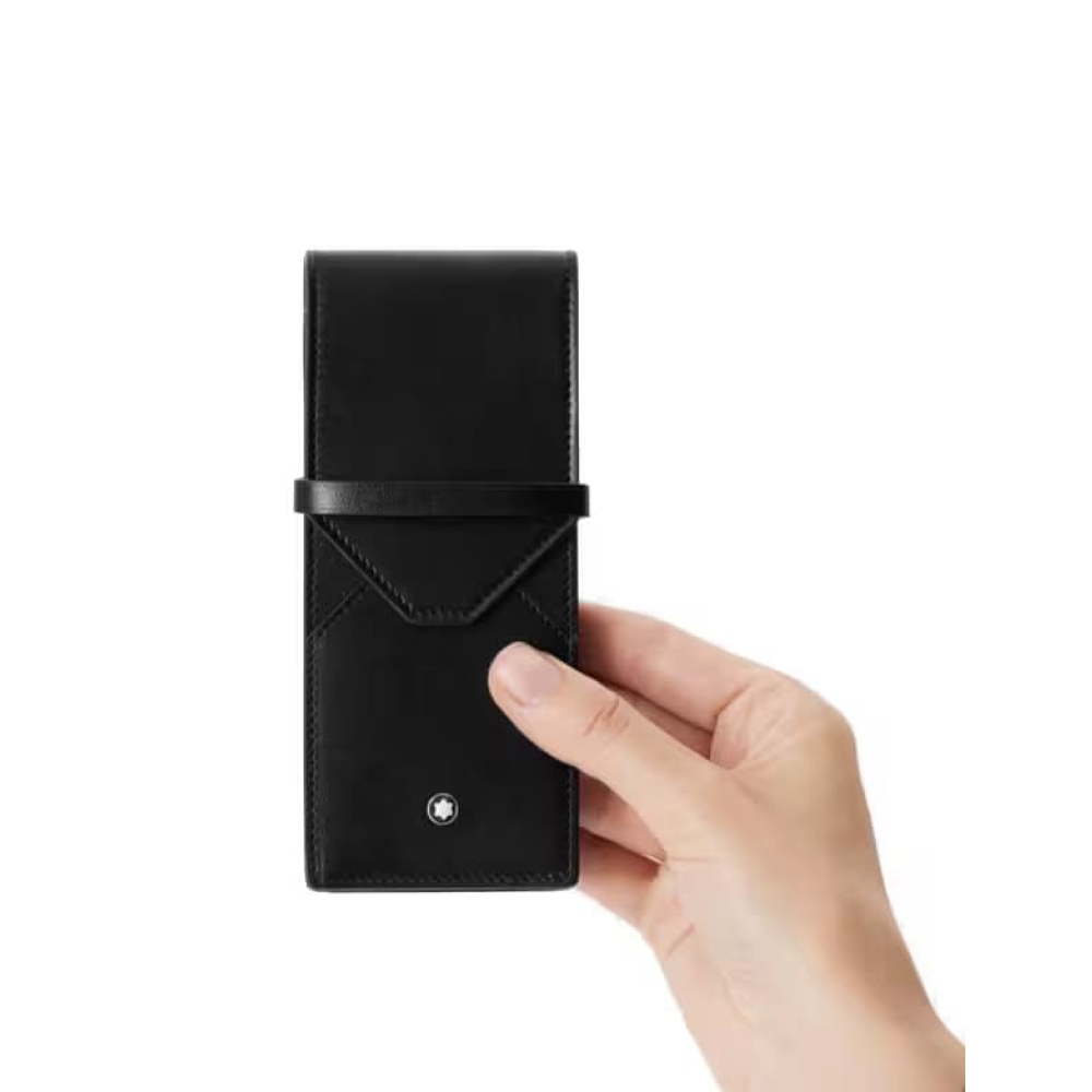 Montblanc Meisterstück Classique veya Le Grand boyutlarında üç kalemi alacak şekilde tasarlanan bu lüks kalemlik, kalemlerinizi şık bir şekilde saklamanın zarif bir yolunu sunuyor. Pürüzsüz siyah deriden el yapımı olarak üretilen sağlam kalemlik, Montblanc amblemiyle tamamlanmıştır.