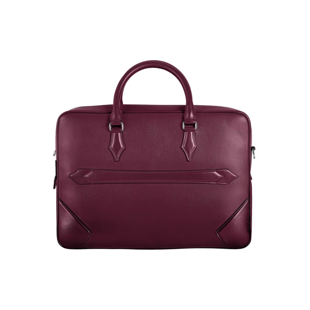 Belge tutucu, göz alıcı ve aynı zamanda zarif bir görünüm sunan zengin ve derin bir renk olan parlak siyah frenk üzümü rengi deriden üretilmiştir. Oymalı saplar ve hassas dikişler gibi detaylar, Montblanc yazı gereçlerinin inceliğini çağrıştırarak bu belge tutucuyu gerçek bir işlevsel sanat eseri haline getirir.