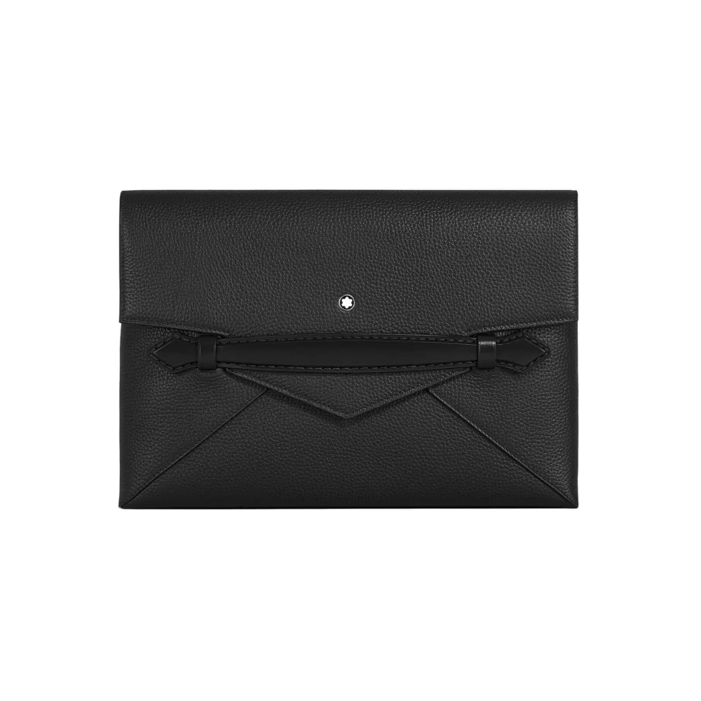 Hayatlarının her alanında zarafet arayanlar için tasarlanan bu el çantası/belge tutucu, siyah taneli dana derisinden üretildi. Şık zarf tasarımlı, kalem ucu üçgen ön sapıyla modern değişimlerle zenginleştirilerek Montblanc değişiminin bir dokunuşunu katıyor. Ana bölme, düzenleme için açık bir cep ve iki adet yazı gereci yuvası sunarken, arka cepte temel gidişata kolay erişim sağlar.