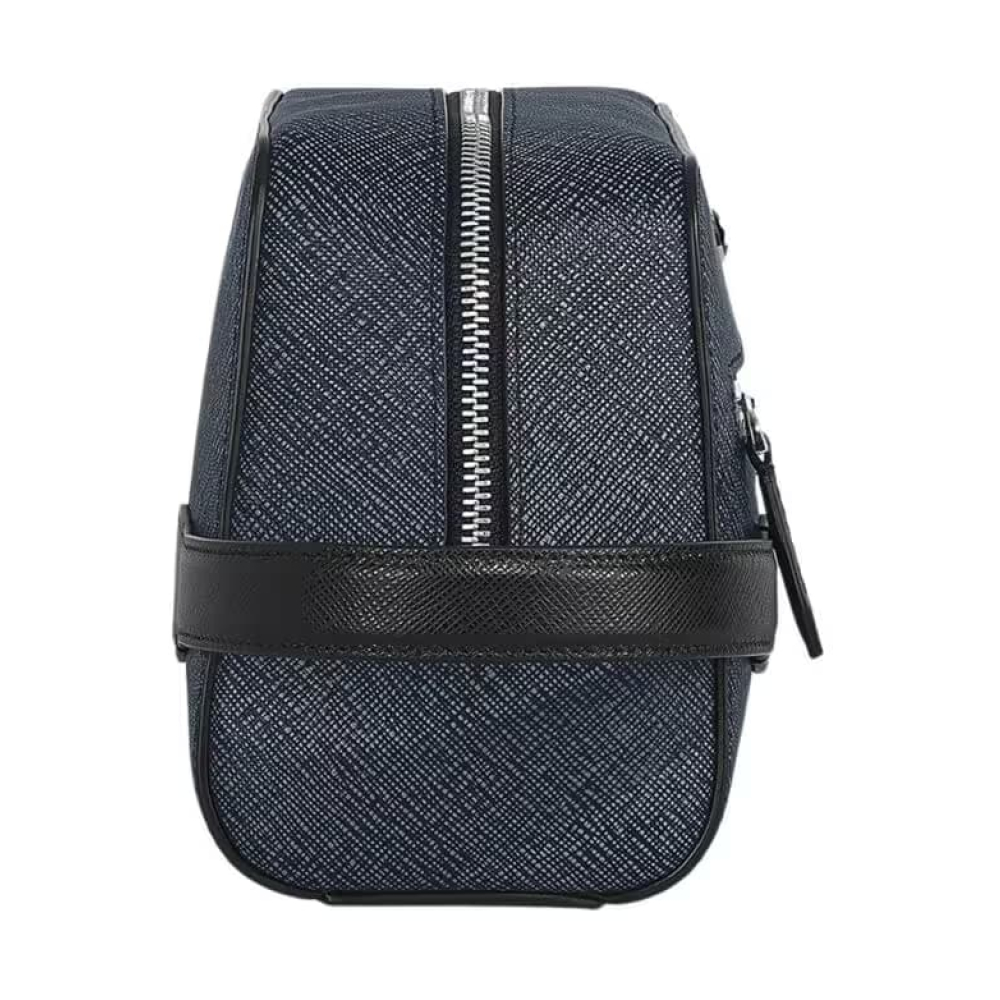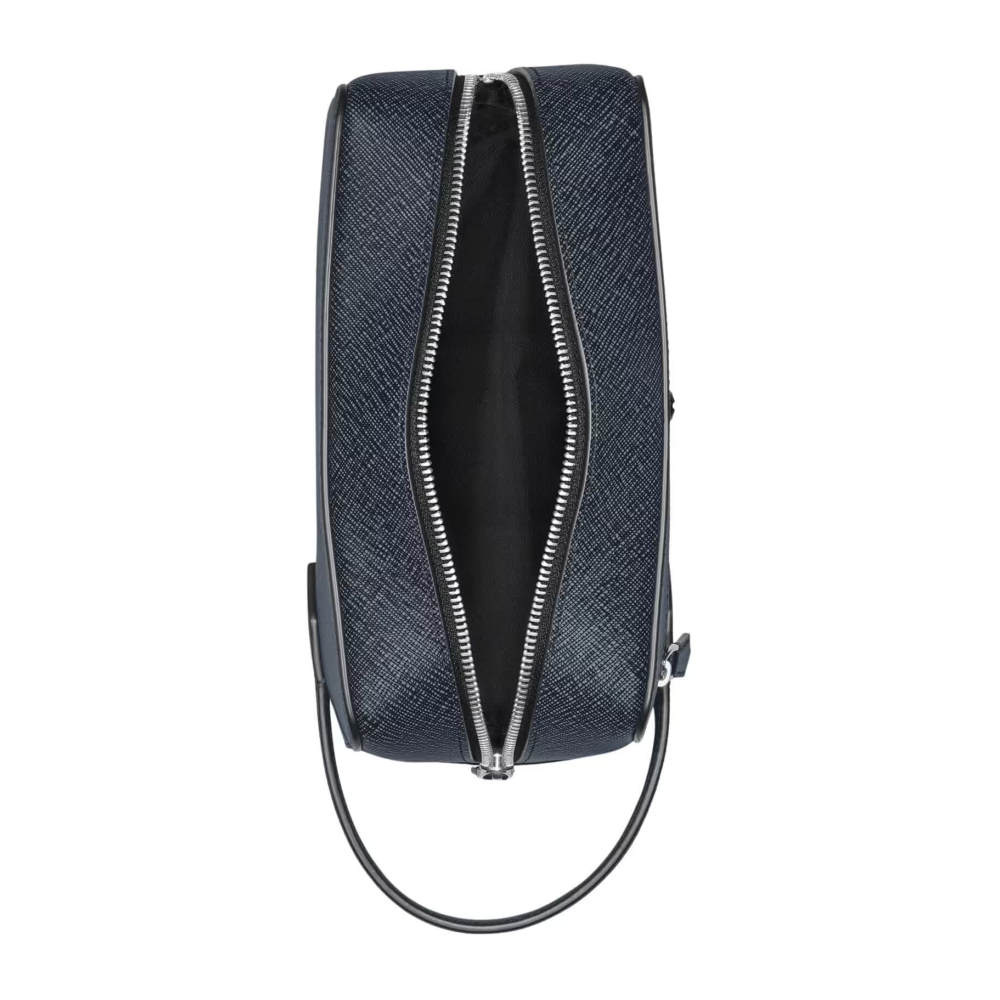 İster iş seyahatleri ister tatiller için olsun, bu el çantası olmazsa olmaz bir seyahat arkadaşı. Şık mavi ve siyahın zarif iki tonlu kombinasyonunda kabartmalı Sartorial deriden üretilen bu çanta, geniş iç hacmi ve eşyalarınız için dışta fermuarlı bir cebiyle öne çıkıyor. Deri sapları sayesinde elde taşıyabilir veya seyahat çantanızın içine koyabilirsiniz.