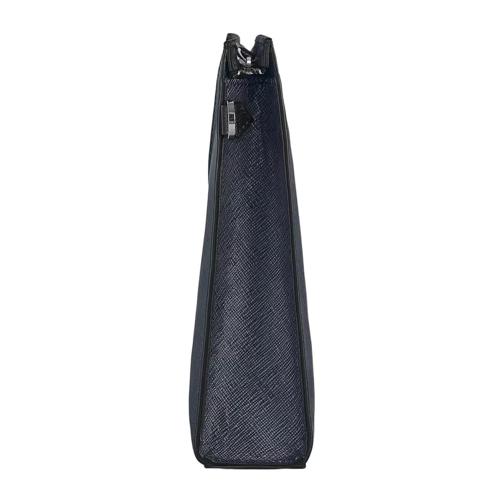 Bu sofistike el çantasıyla günlük ihtiyaçlarınızı şık bir şekilde taşıyın. Zarif mavi ve siyahın rafine iki tonlu kombinasyonunda kabartmalı Sartorial deriden üretilen bu çanta, kullanışlılık için ek bir açık cebe sahip geniş bir ana bölmeye sahiptir. Çok yönlü ve şık olan bu çanta, elde taşınabilir, kol altında taşınabilir veya çıkarılabilir sapıyla bilekte kullanılabilir.