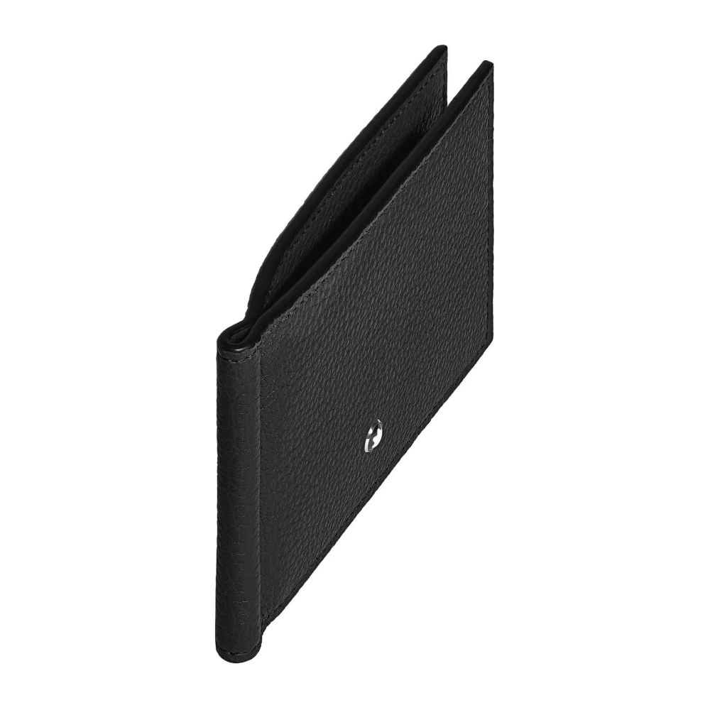 Bu ince, iki katlı cüzdan, geleneksel bir tasarımı üst düzey bir dokunuşla yeniden yorumluyor. Siyah renkte lüks dokulu deriden üretilen bu cüzdan, zarif metal para klipsi ve altı kredi kartı yuvasıyla, seçkin bireyler için şık bir günlük düzenleme imkanı sunuyor.