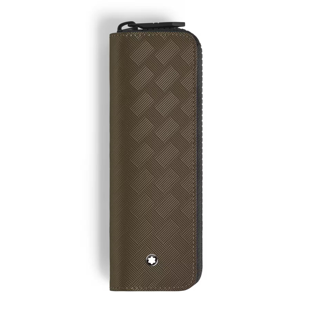 Meisterstück Classique veya LeGrand boyutunda bir kalemi alacak şekilde tasarlanan bu kalem kutusu, en sevdiğiniz yazı gerecinizi taşımak veya saklamak için güvenli ve şık bir yol sunar. Haki deriden üretilen ve Extreme 3.0 deseniyle kabartılmış olan bu kutu, Montblanc'ın yazı mirasına saygı duruşunda bulunan, kalem ucu şeklinde ayırt edici bir fermuar çekme ucuna sahiptir.