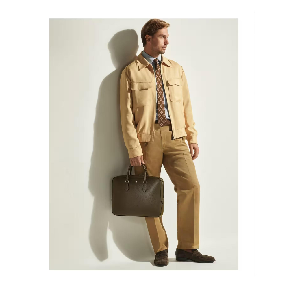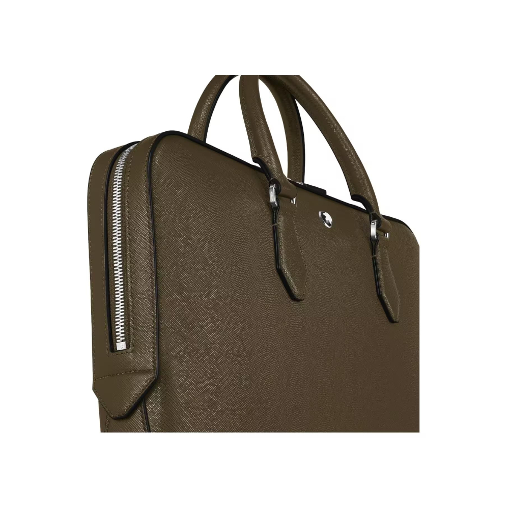 Bu ince evrak çantası, Montblanc'ın yazı mirasını şık ve modern işlevsellikle birleştiriyor. Zarif haki tonunda, kabartmalı deri kullanılarak üretilen bu çanta, iş ihtiyaçlarına göre tasarlanmış olup, profesyoneller için rafine ve pratik bir seçimdir. Geniş ana bölme, A4 dosyaları, elektronik cihazlar ve yazı gereçleri için bol yer sunarken, çıkarılabilir ve ayarlanabilir askı çok yönlü taşıma seçenekleri sağlar.