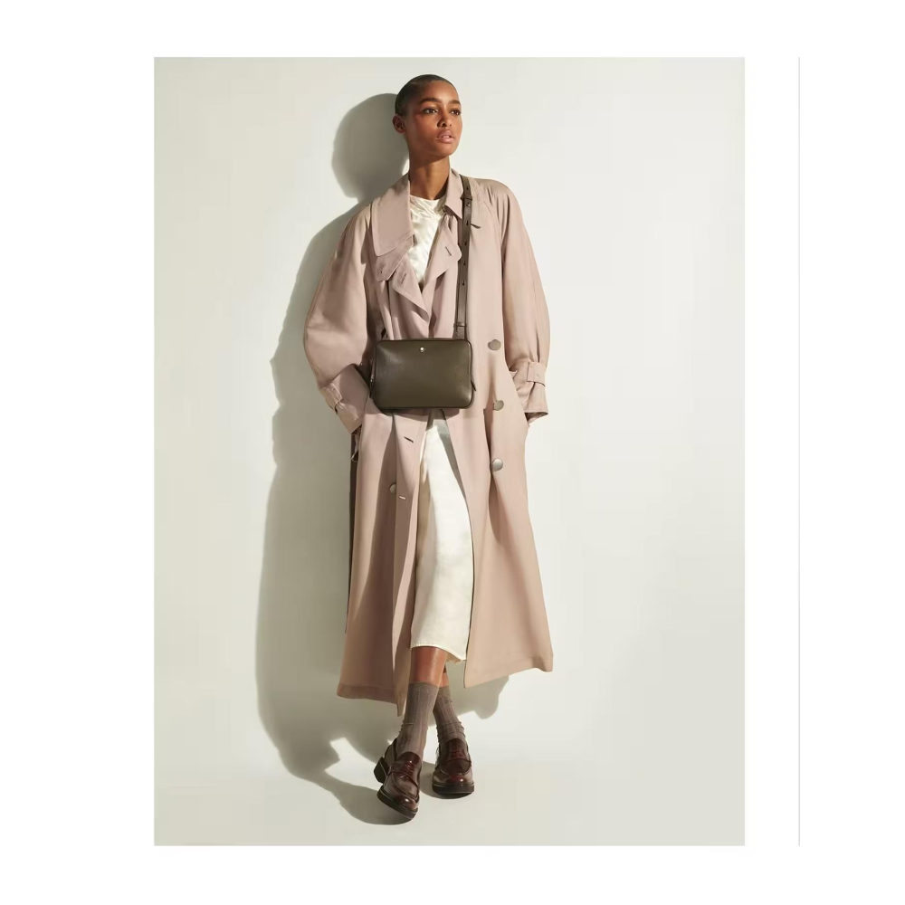Yazı dünyasından ilham alan bu kompakt çanta, ayarlanabilir ve çıkarılabilir askısı sayesinde elde veya omuzda taşınabilir. Sartorial kabartmalı deriden üretilen çantanın zarif haki rengi sofistike bir dokunuş katarken, geniş iç hacmi ve iç açık cebi şehirde bir gün veya gece dışarı çıkarken ihtiyaç duyacağınız eşyaları taşımak için yeterli alan sunar. Daha da fazla işlevsellik için, arkadaki deri bantı kullanarak aksesuarı daha büyük çantalara takabilirsiniz.