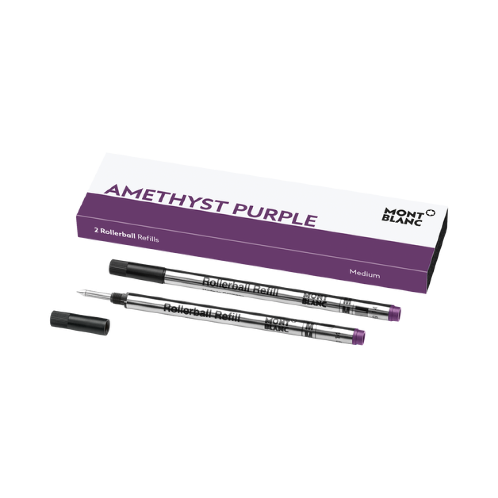 Montblanc Rollerball Yedekleri, Ametist Moru. Meisterstück LeGrand, Montblanc M ve Heritage koleksiyonu kapaksız rollerball kalemler hariç tüm Montblanc Rollerball/Fineliner kalemler için uygundur. Ambalaj birimi = 2 adet yedek. M = Medium (orta)