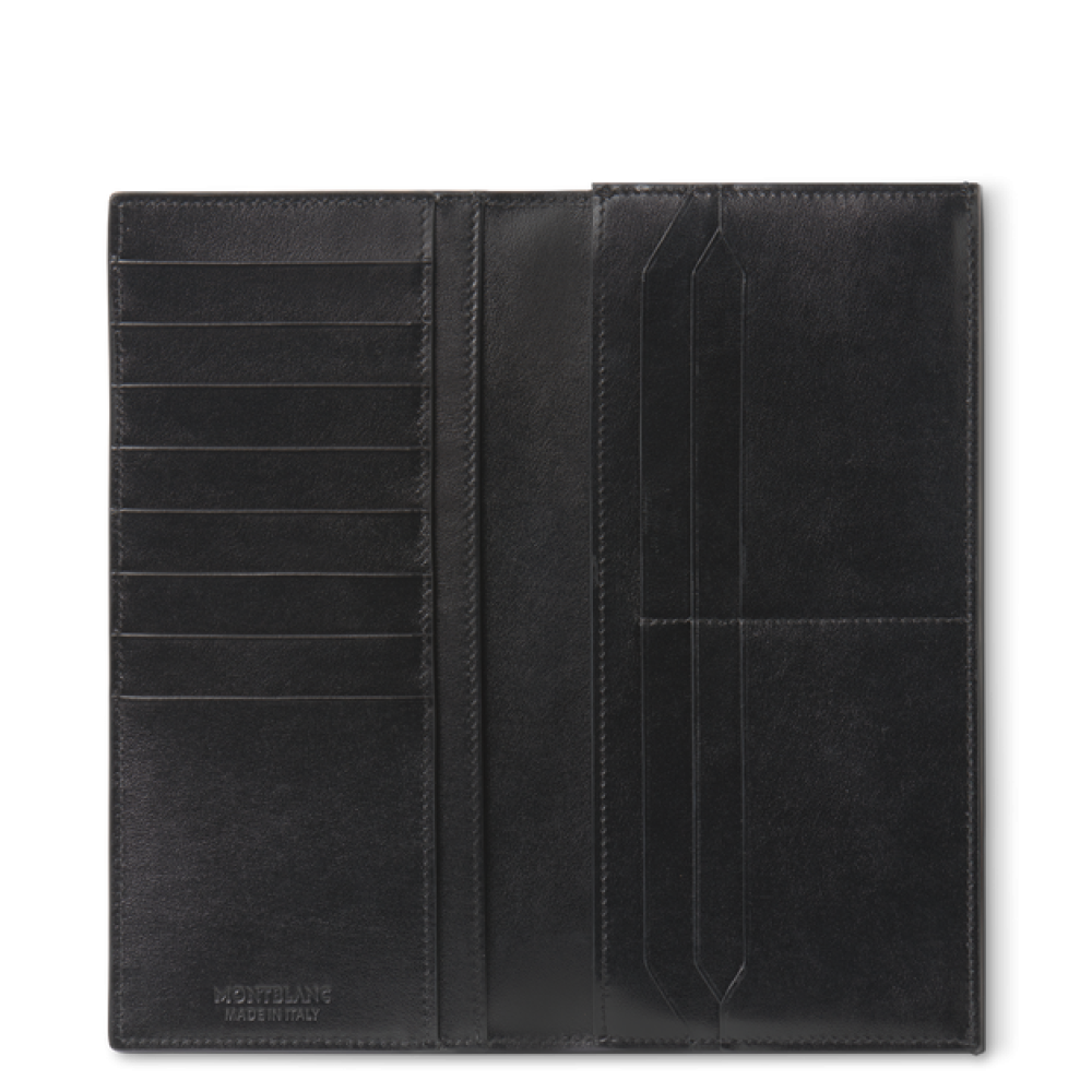 Fonksiyonellik düşünülerek tasarlanmış şık bir cüzdan olan Meisterstück 14cc, bozuk paraları veya önemli küçük eşyaları güvenle saklamak için geniş bir fermuarlı bölmeye sahiptir ve özel yuvalarında 14 kredi kartını taşıyabilir. Bu sofistike cüzdan ayrıca iki banknot bölmesi ve makbuzlar için iki ek cep içerir. Pürüzsüz deriden üretilmiş olup siyah kumaş astarla kaplanmış ve Montblanc amblemiyle tamamlanmıştır.