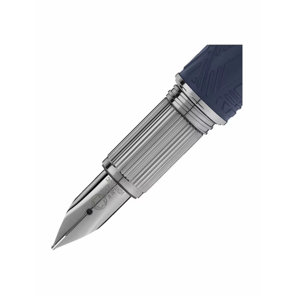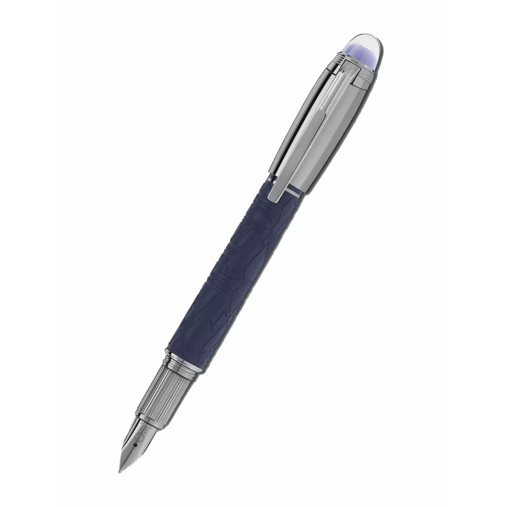 Starwalker SpaceBlue, gezegenimiz Dünya'nın ötesine bakarak yıldızlara ve galaksiye yöneliyor. Bu yeni StarWalker koleksiyonu, doğanın en büyüleyici yaratımlarından biri olan Widmanstätten Deseninin karmaşık yapılarını anımsatan bir tasarımla, reçine gövdeye yeni bir görünüm kazandırıyor. Metal kapak ve bağlantı parçaları koyu rutenyumla kaplanmış olup, mat değerli reçine için kullanılan derin uzay mavisi tonu, yıldızlı bir gökyüzünün renklerini hatırlatıyor. Ayrıca, Montblanc ambleminin yer aldığı kapak üstündeki alt kubbe de derin uzay mavisi rengindedir. Dolma kalem, rutenyum kaplı Au585 altın uç ile el yapımı olarak üretilmiştir.