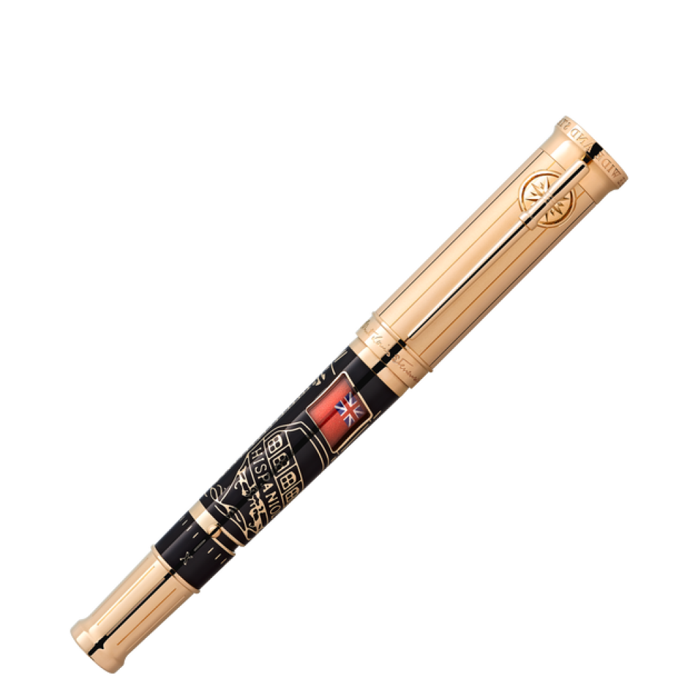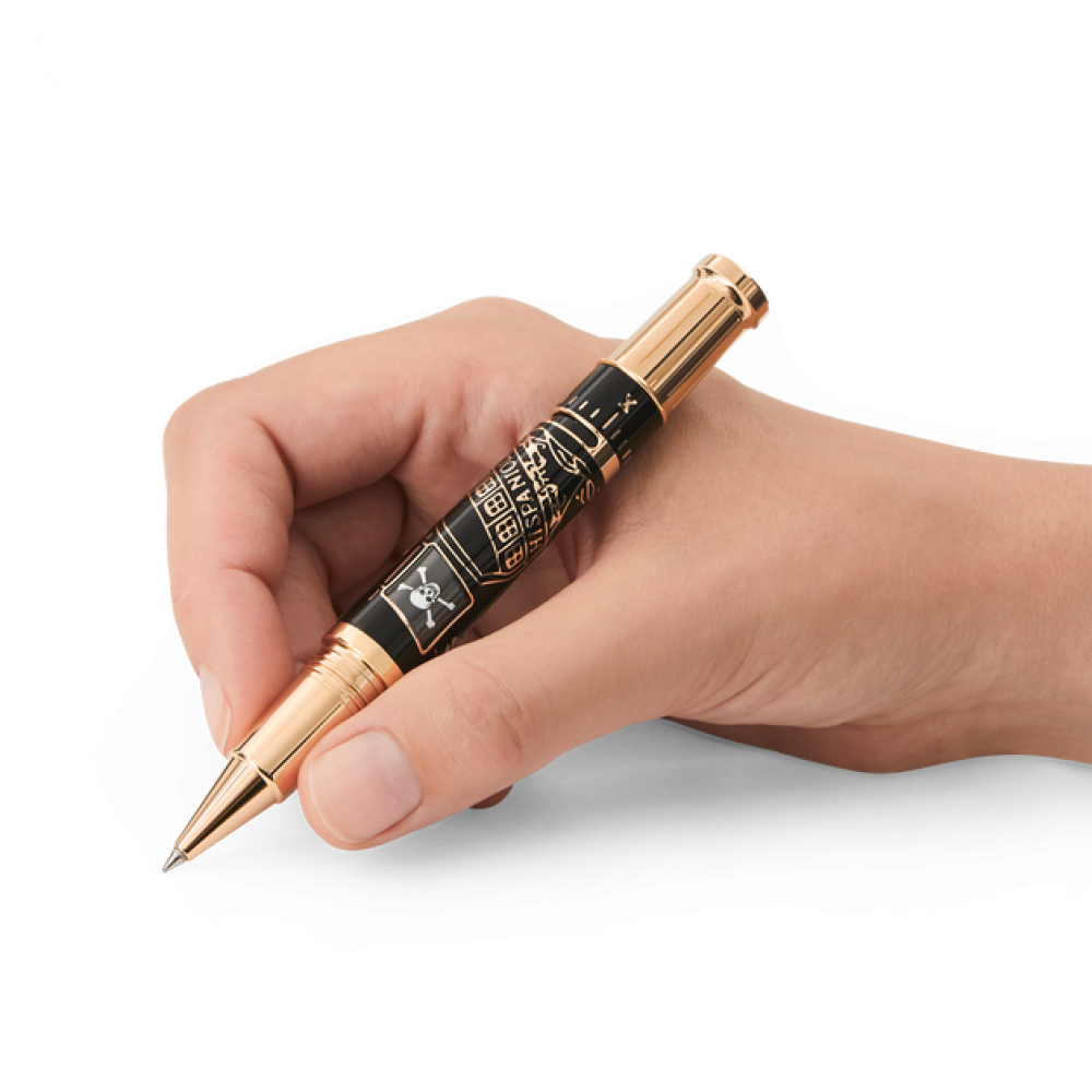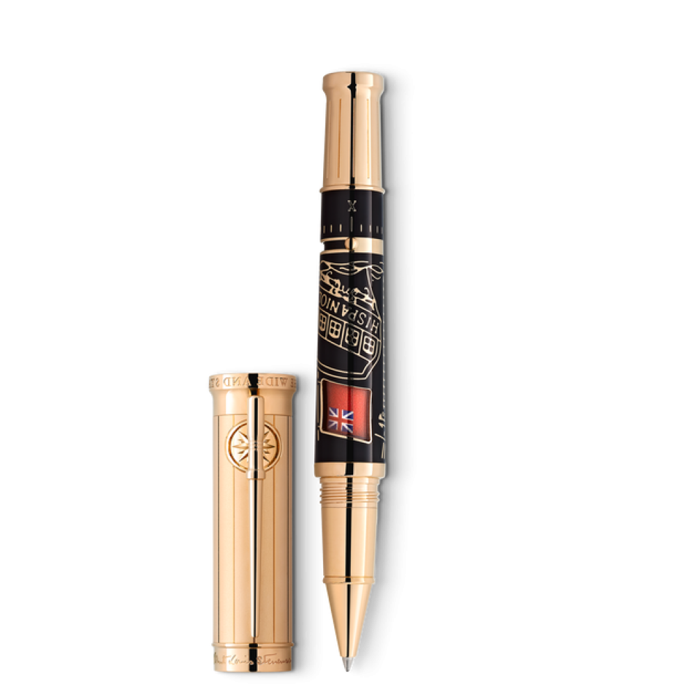 Robert Louis Stevenson, 1850’de Edinburgh’da doğmuş ve özgürlük tutkusuyla farklı dünyalara dalma isteğiyle tanınan bir yazardır. Denemeler, seyahat yazıları ve unutulmaz macera hikâyeleri kaleme almış; Long John Silver, Captain Flint ve Jekyll & Hyde gibi karakterlerle ün kazanmıştır. Montblanc Writers Edition, Stevenson’ın hayal gücüne adanmıştır ve özellikle “Treasure Island” romanından ilham alır. Kalemin formu ve konik halkaları, eski bir dürbünü andırır. Gövdede siyah lake üzerinde Hispaniola gemisi yer alır. Küçük bir pencereden görünen İngiliz bayrağı, bir düğme ile korsan bayrağına döner. Kapakta gemi güvertesi tahtalarını andıran dikey çizgiler ve pusula gülü detayları bulunur. Klips, bir geminin halatlarını bağlamak için kullanılan pim şeklinde tasarlanmıştır. Tepe kısmı sedef Montblanc amblemiyle taçlandırılmıştır. Tasarım, Stevenson’ın imzası ve özel bir sarı altın tonuyla tamamlanmıştır.